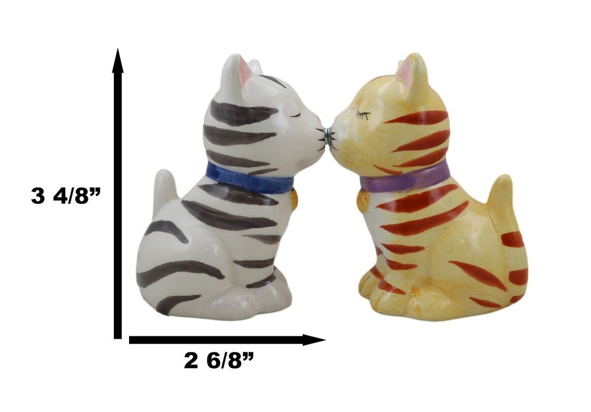 Ebros Kissing Orange And Gray Striped Tabby Cats Salt And Pepper Shakers Set