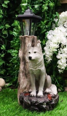 Woodlands Lone Gray Wolf Greetings Figurine Solar LED Light Lantern Welcome Lamp