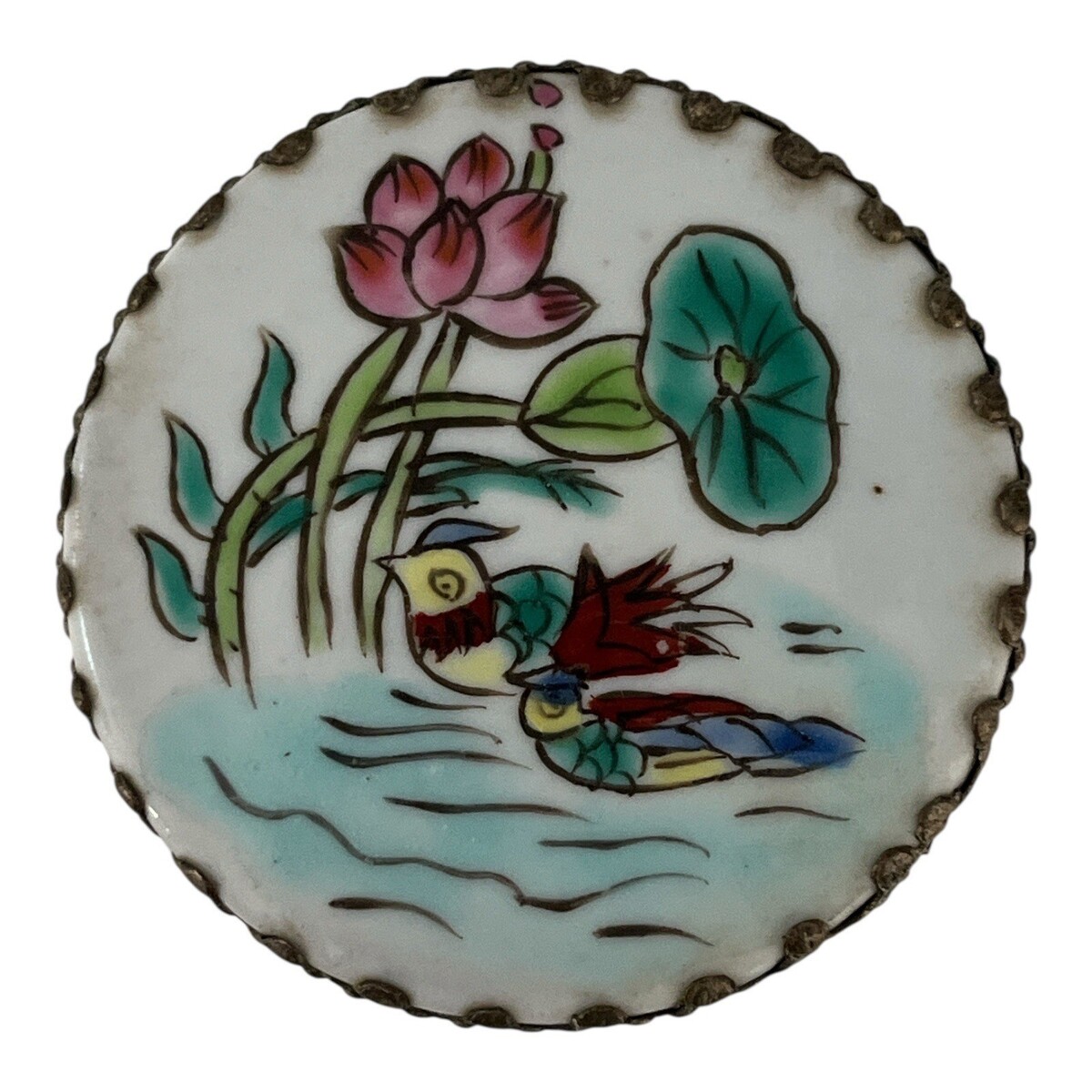 VTG Russ Berrie Hand Painted Trinket Box Porcelain Ducks Floral Lid 2”