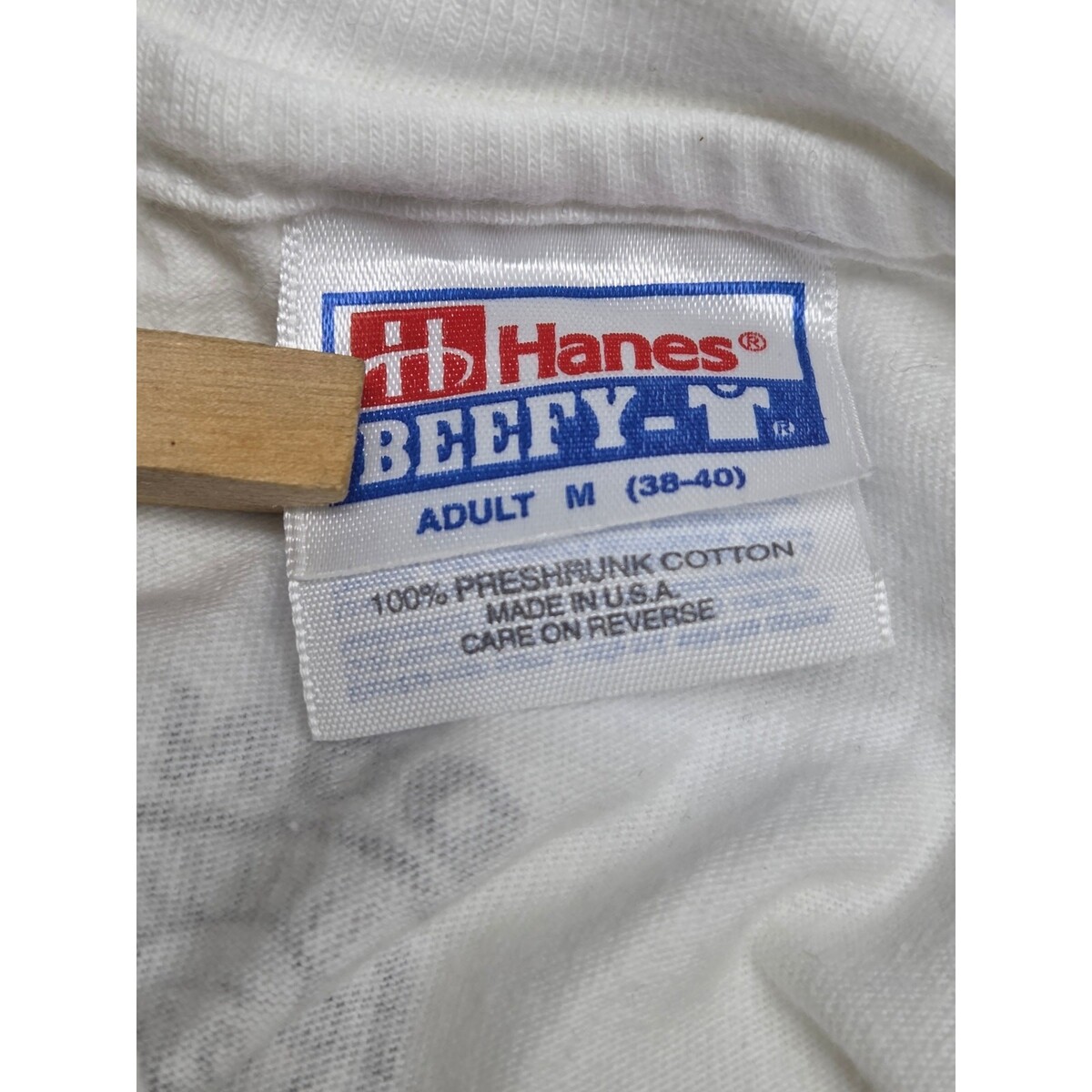Printed by Don?t Panic, a well-known 1990s graphic tee company specializing in clever slogan shirts. The design is printed on a Hanes Beefy-T USA-made blank, the iconic heavyweight tubular-knit tee of the era. The 1994 copyright confirms authentic vintage production.