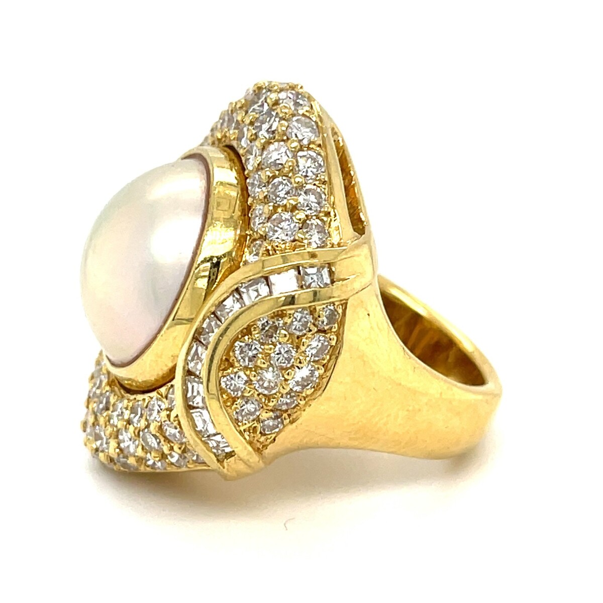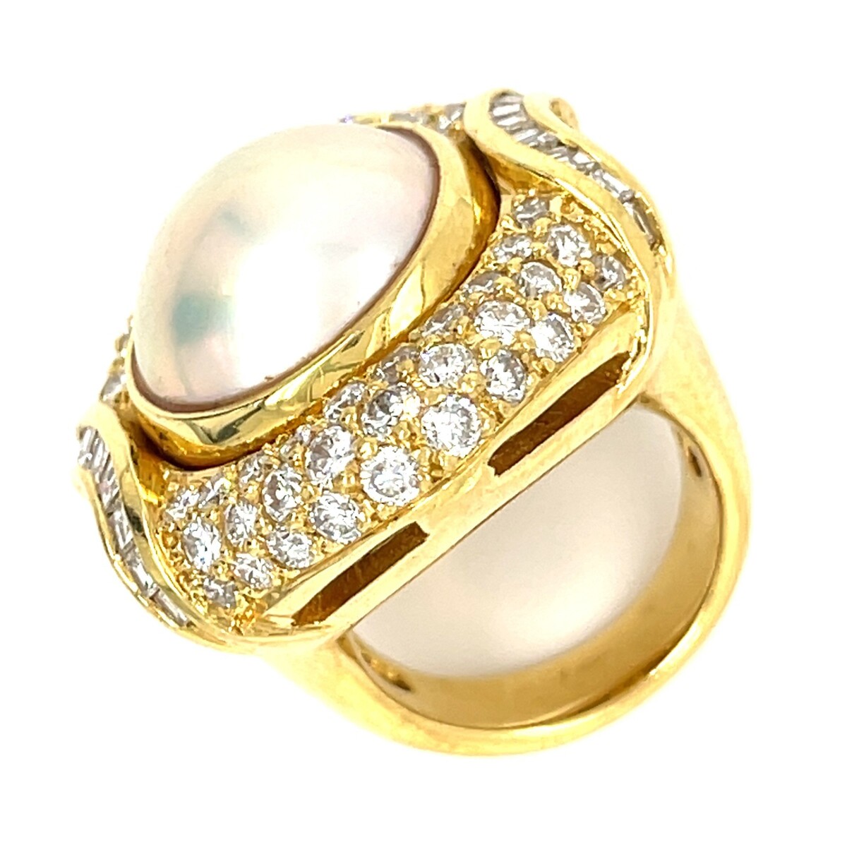 Mabe Pearl and Diamond Ring weight: 2.75 carats Mounted in 18k Gold Size: 5 1/4