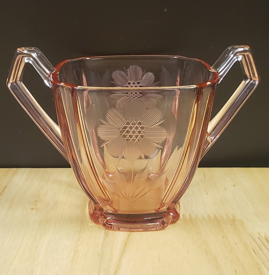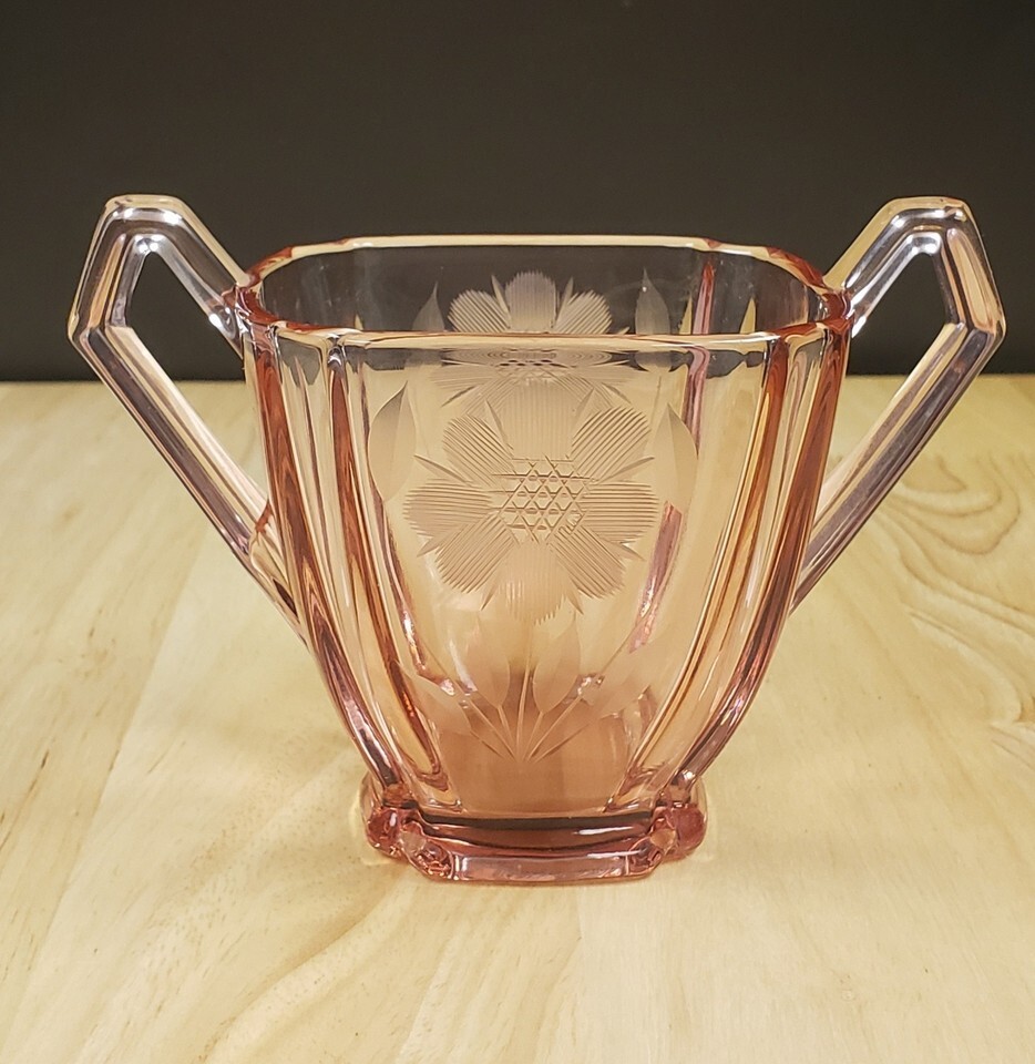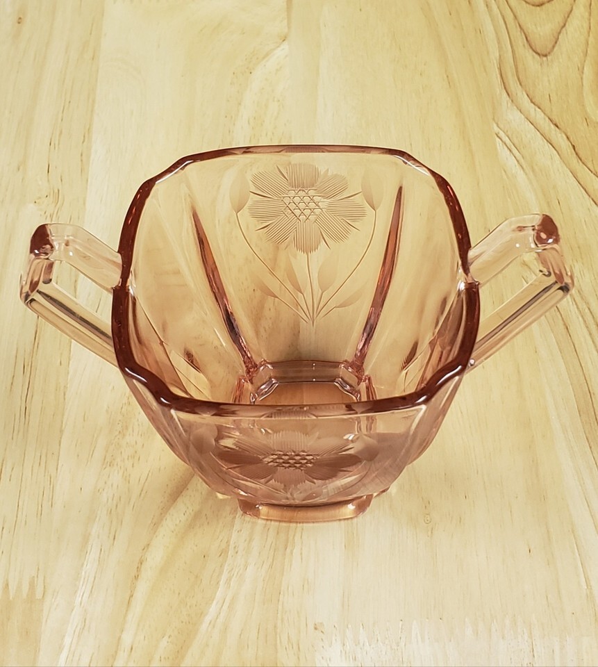 Vintage Pink Depression Glass Cornflower Pattern Double Handled Open Sugar Bowl