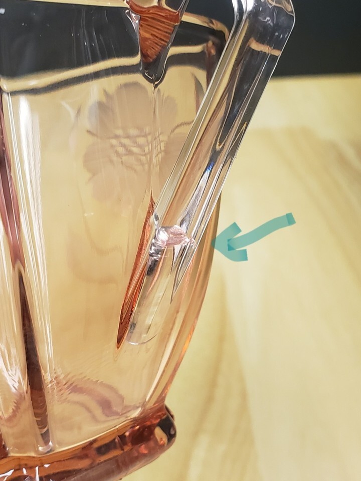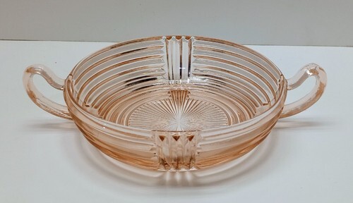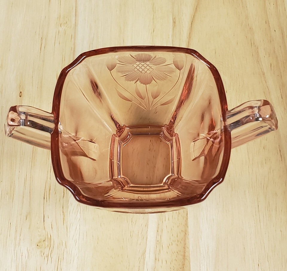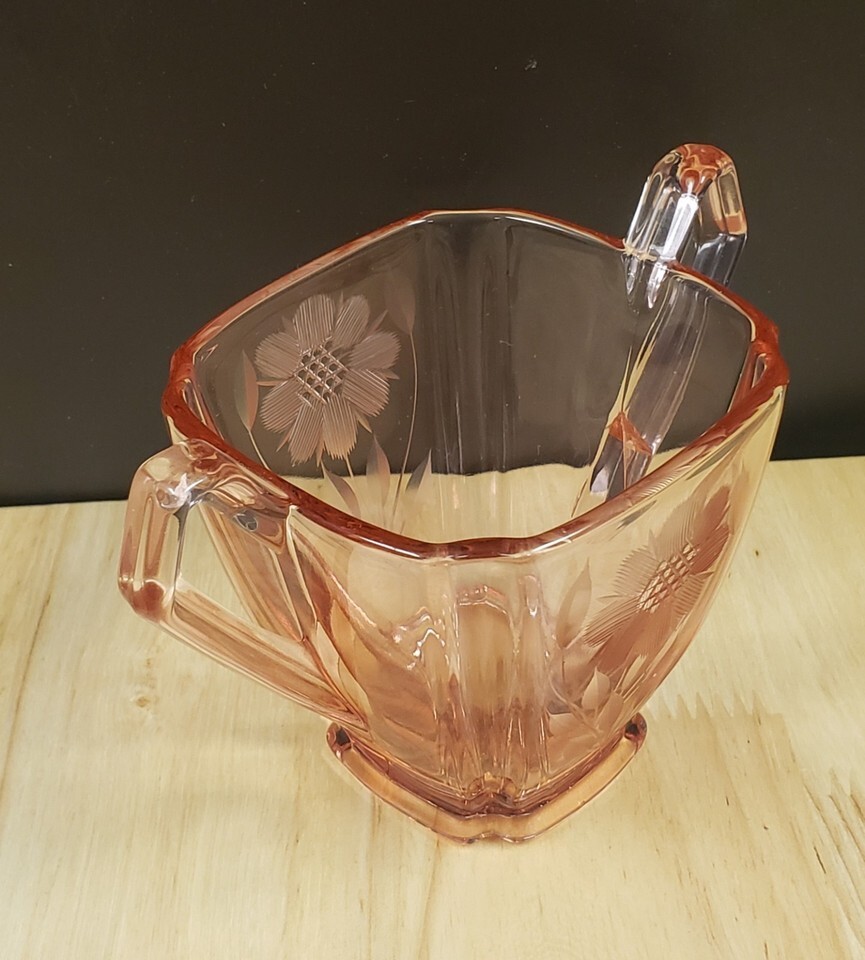 Lovely vintage pink depression glass decorated with beautiful etched cornflower pattern