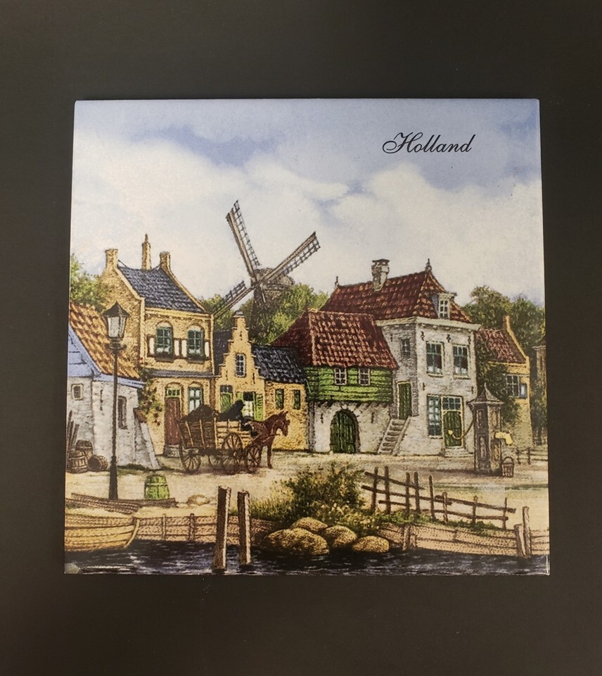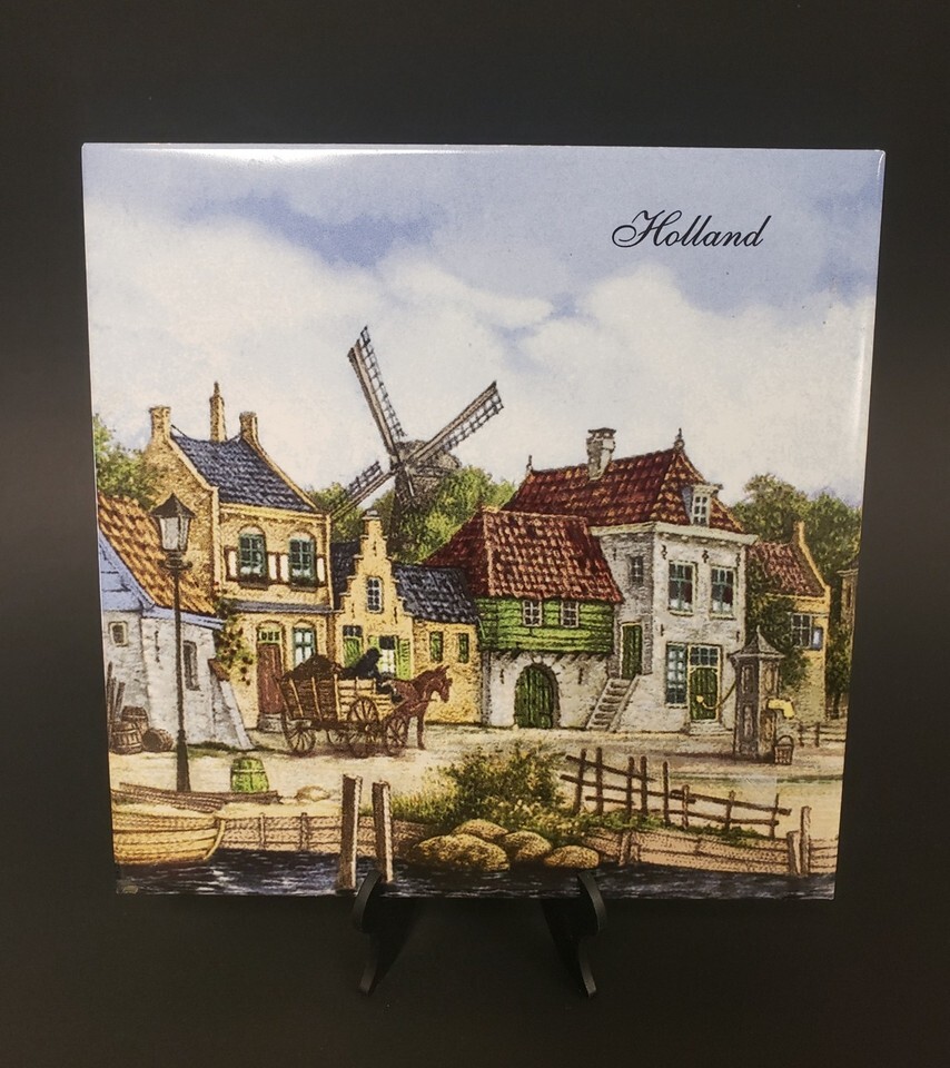 Vintage Hand Decorated Holland Scene 6-Inch Square Ceramic Tile