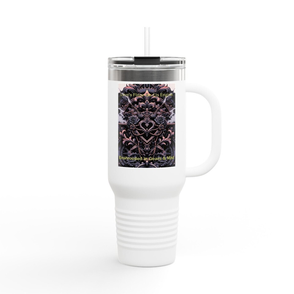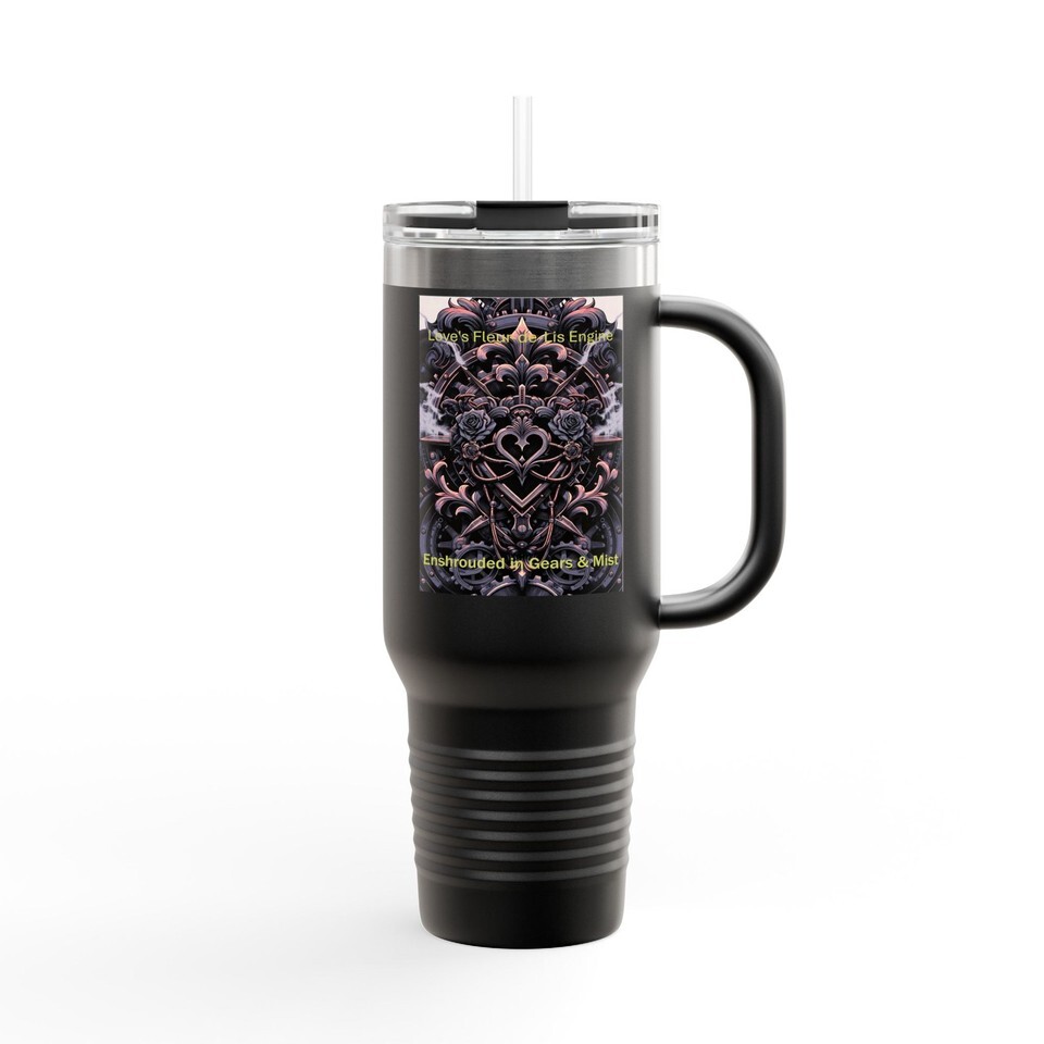 Gothic Floral Heart Artwork 40oz Tumbler Insulated Ornate Rose Mandala