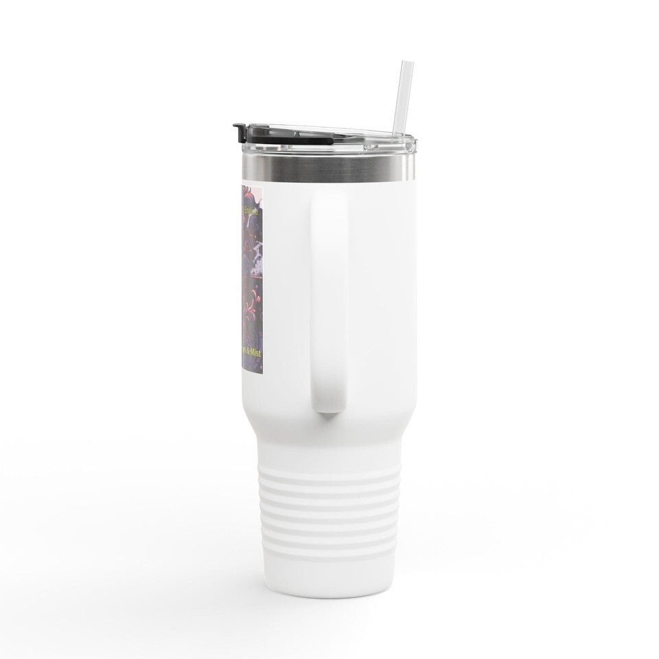 This 40oz insulated travel mug is built for long days, early mornings, and the kind of road trips that keep going until the stars show. Solid stainless steel and double-wall insulation hold temps steady for hours ? coffee stays hot on the drive, iced tea stays cold on the trail. The ergonomic handle and large capacity mean fewer refills and more focus on the route ahead. A leak-resistant push-on lid with straw lets you sip while on the move, and the durable powder coat finish resists wear from backpacks and cup holders. The printed artwork adds a personal, handcrafted feel that pairs with everyday routines and weekend escapes. Easy to grab, built to last, and ready to travel with you.