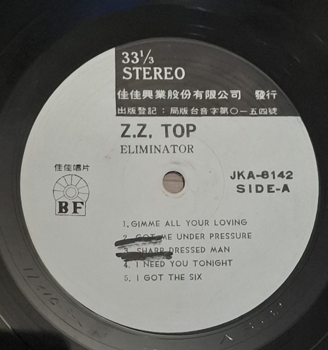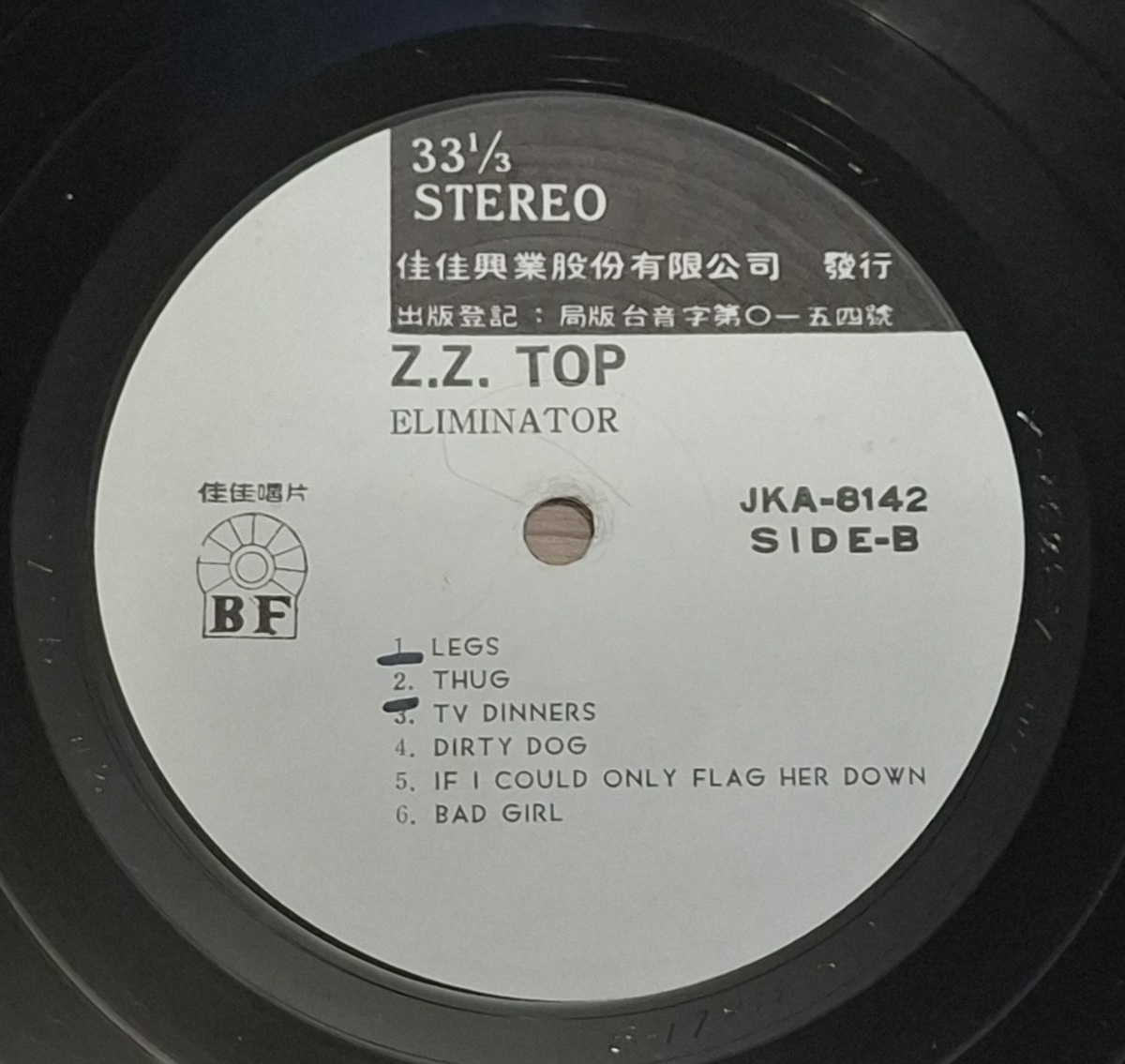 Taiwan pressing of Eliminator by ZZ Top on BF Records.