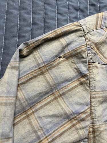 Great preowned condition. Men?s size large. There is one small pin hole on the front right shoulder, see pictures. 23? pit to pit. 30? shoulder to bottom. 23? pit to cuff.