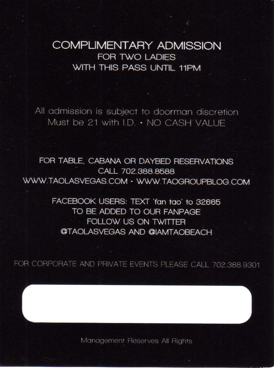 This is a collectible VIP Pass for world renowed DJ PAUL VAN DYKE at the TAO NightClub and TAO Beach for the Independence Day Weekend celebration July 3rd 4th.