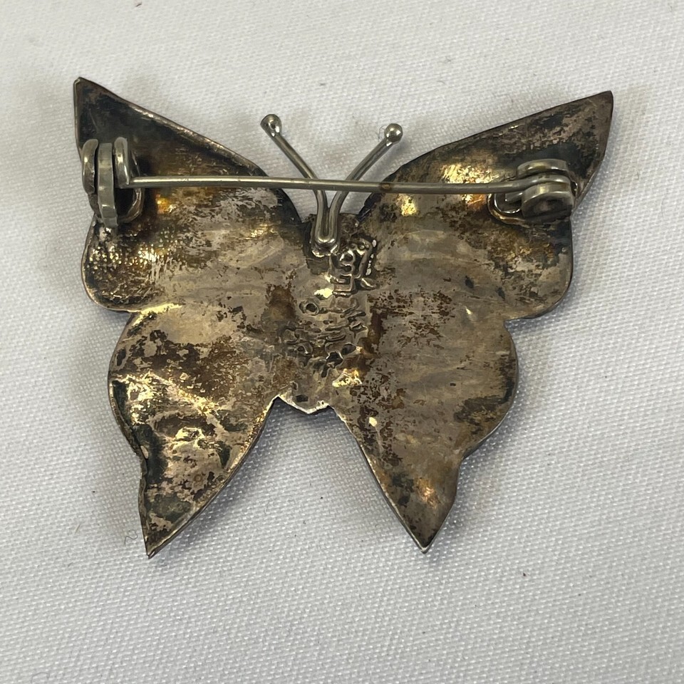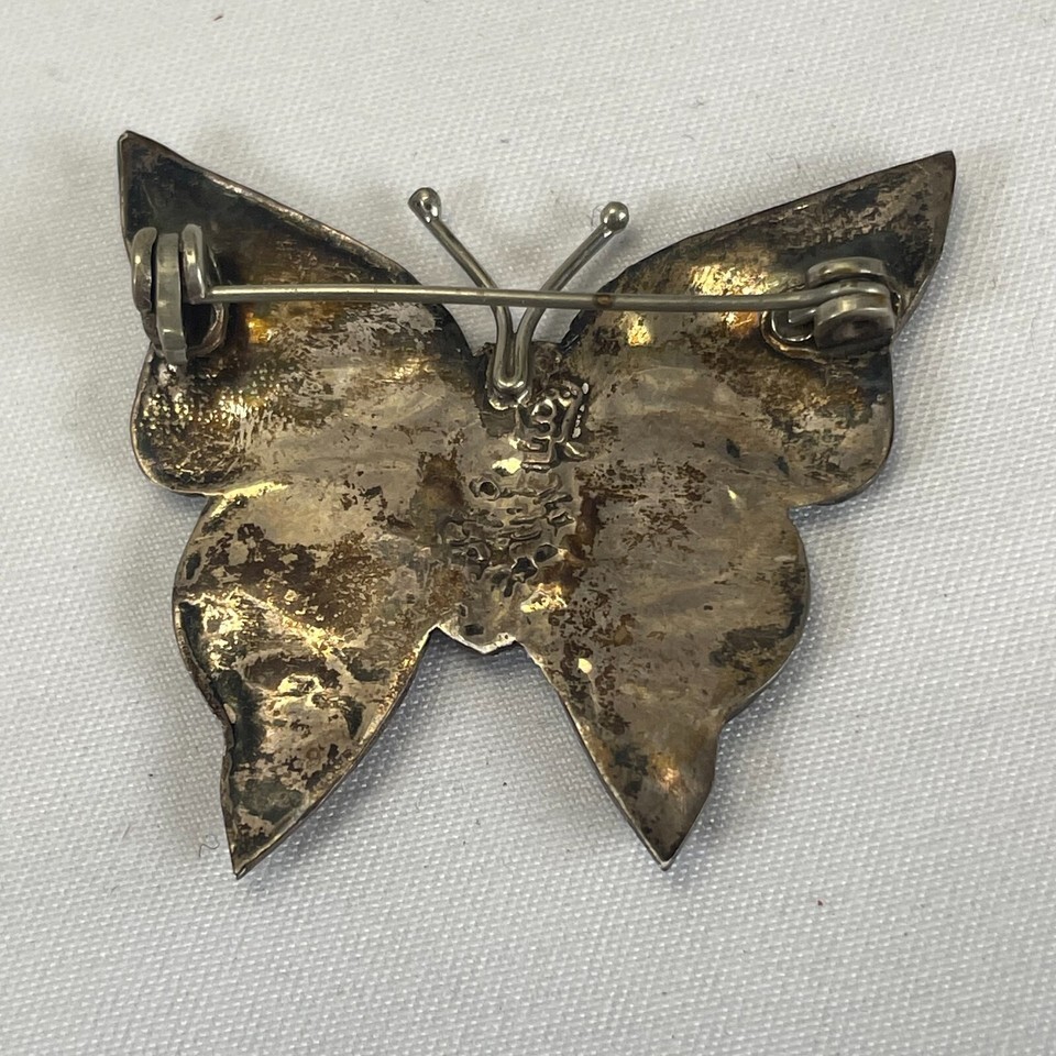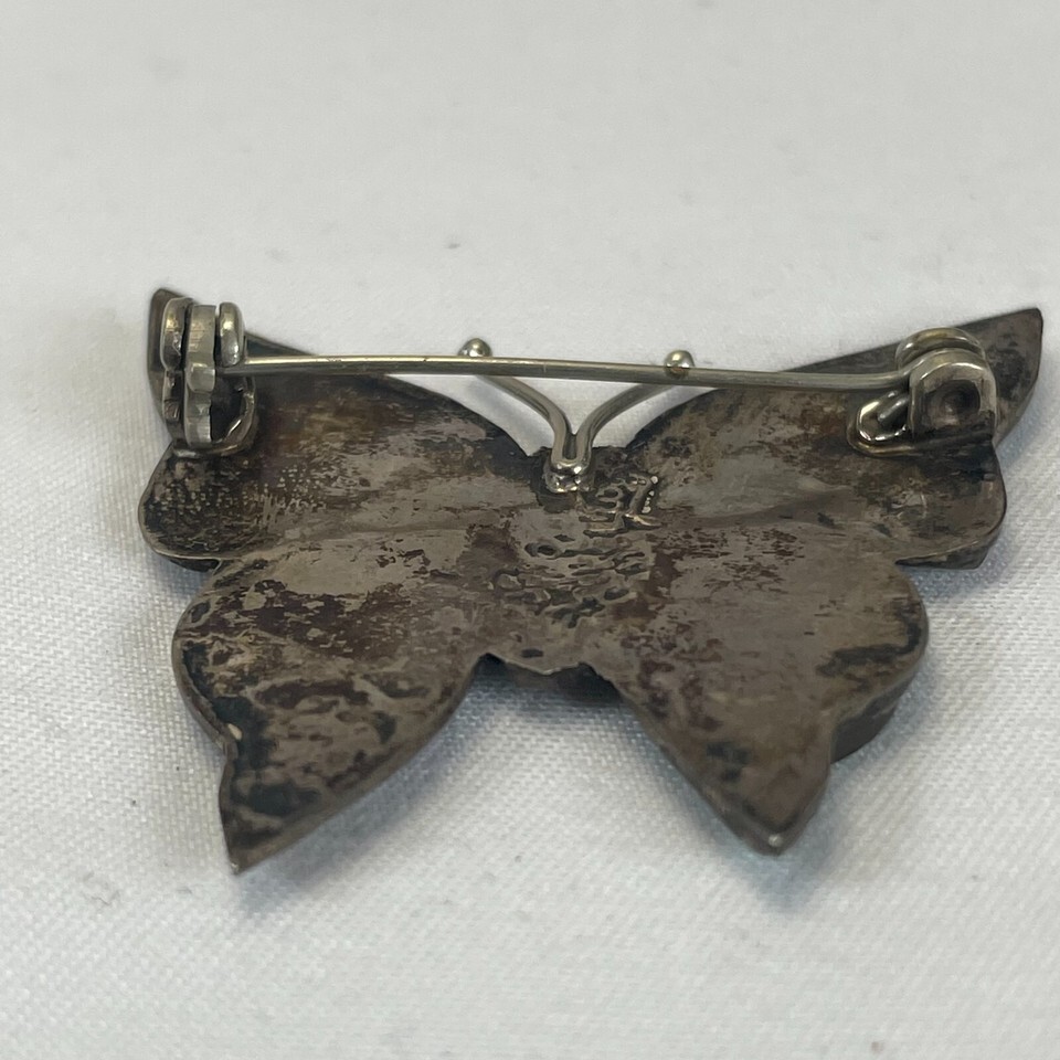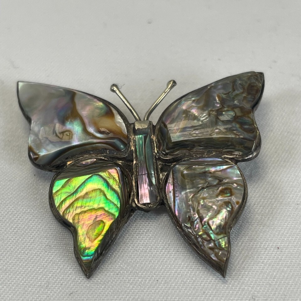 Sterling Silver Abalone Shell Inlay Butterfly Brooch Pin 1.4" W x 1.25" H