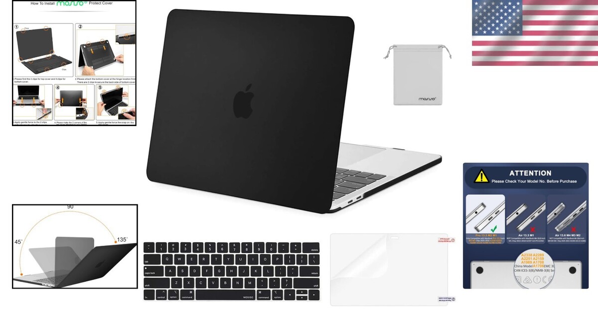 Ultra-Slim Black MacBook Pro 13 Case with Keyboard Cover Screen Protector 2025