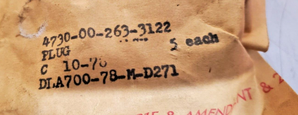 3 Qty. of 5 units Hex Pipe Plugs 4730-00-263-3122 | DLA700-78-M-D271 (15 Qty)