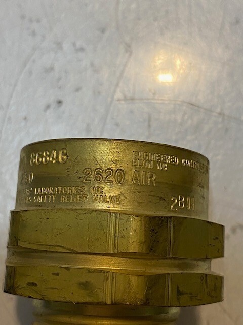 Rego Pressure Relief Valve 8684G Pop Action Brass 250 PSI 1" NPT 2620 Air