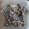 Calvin Klein Floral-Print Smocked-Neck Top, Size Large