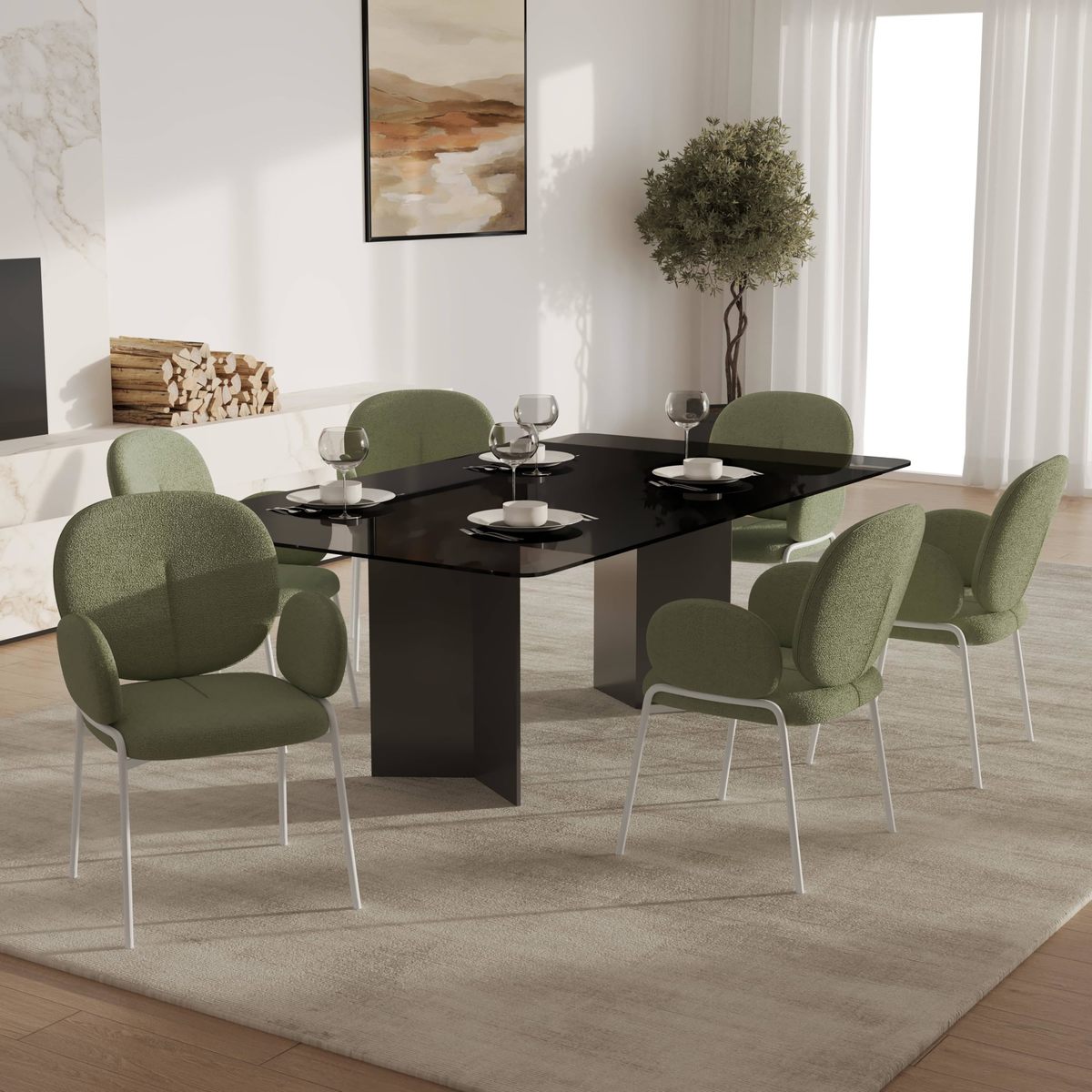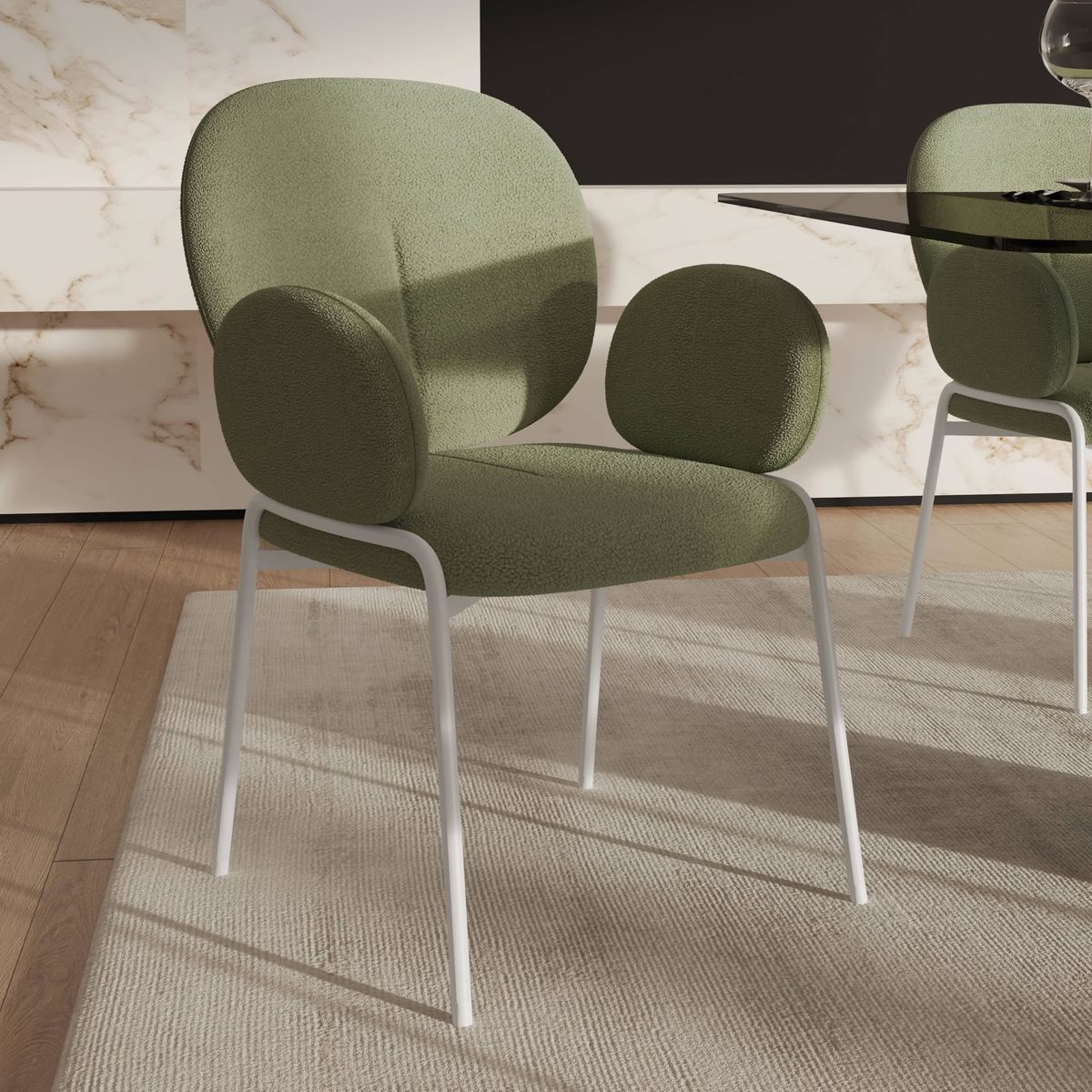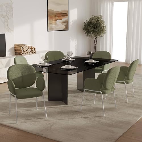 LeisureMod Modern Boucle Dining Chair Upholstered Seat & Back with Armrests, W