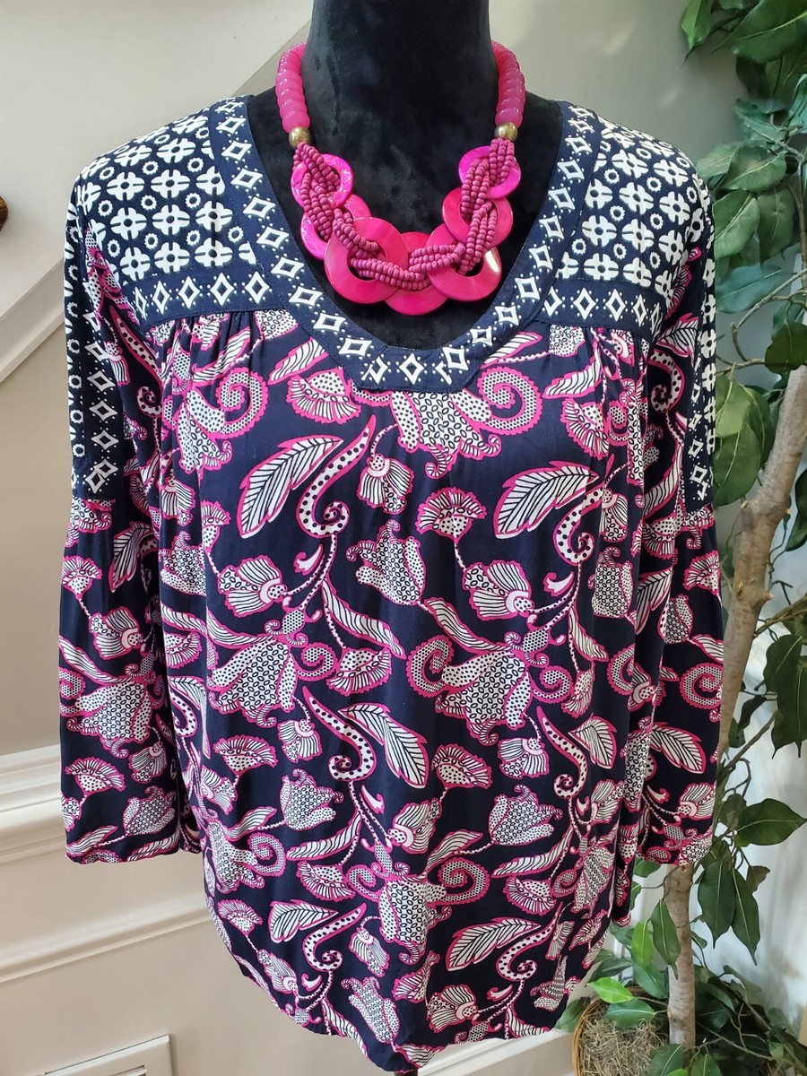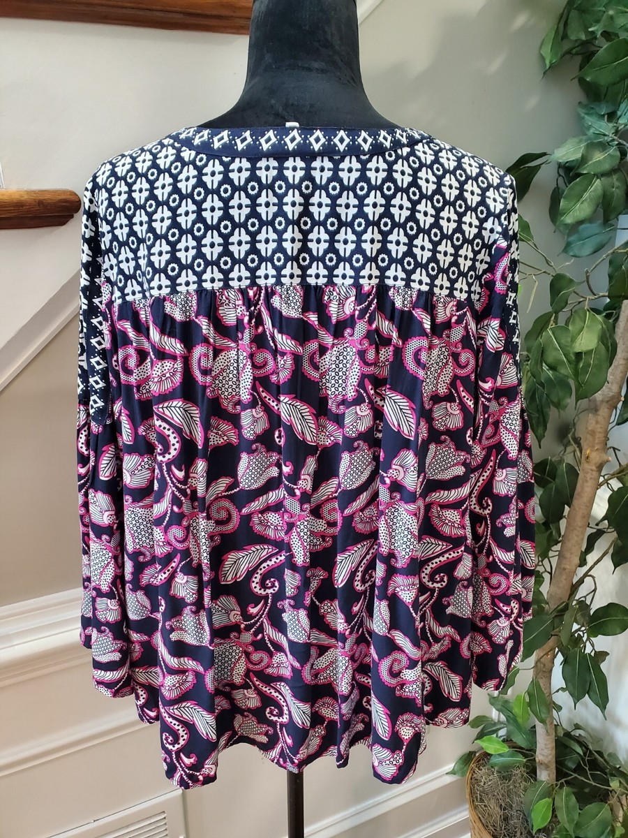 Crown & Ivy Women's Blue 100% Rayon V-Neck Long Sleeve Top Blouse Size Medium