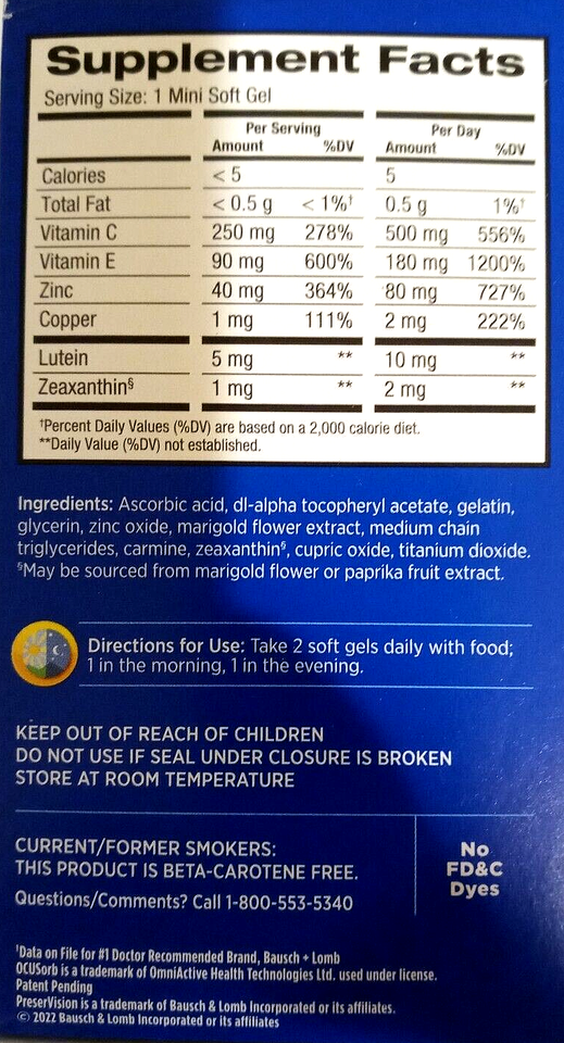 Purchased Bausch Lomb Preservision Vitamins on Bonanza