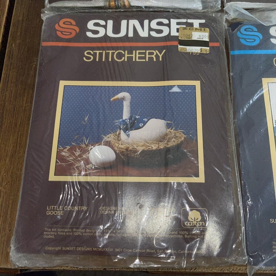 Vintage Lot Of 4 Jiffy Stitchery Kit Sunset Designs #799, little country goose