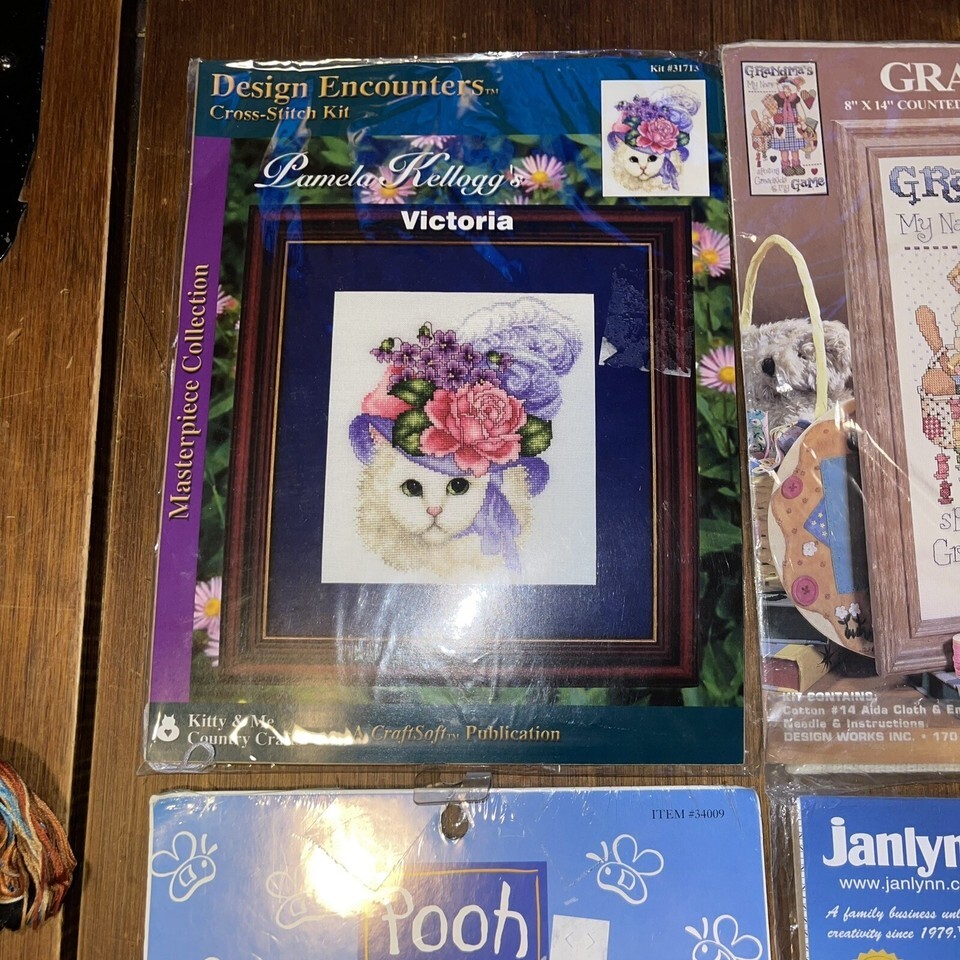 X4 Vintage Cross Stitch Tigger Pooh, Jalynn Mother Prayer, Kitty & Me & Grandma