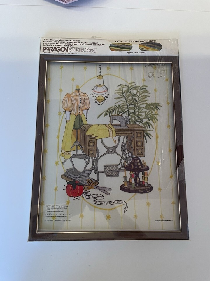 Vintage Paragon Needlecraft Kit #E1702 “A Stitch In Time” 11”x14” Frame Incl NEW