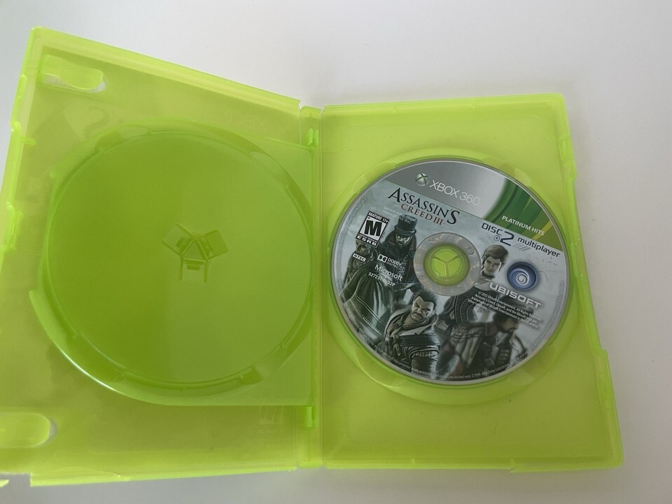 The product is a bundle containing three games from the Assassin's Creed series - II, Revelations, and Black Flag - along with disc 2 only and case for Creed III. These games are specifically designed for the Microsoft Xbox 360 platform and are rated M for Mature. Released in 2013, the games offer an action and adventure genre experience for fans of the Assassin's Creed series, published by Microsoft. This collection provides hours of thrilling gameplay and immersive storytelling set in the world of Assassin's Creed.