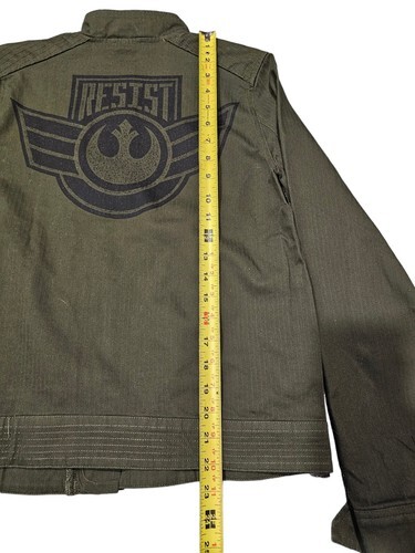 Get ready to join the resistance with this Disney Star Wars Galaxy's Edge jacket. The jacket features the resistance logo and is perfect for any Star Wars fan. The jacket is made for adults and is available in size XS. It comes in a stylish green color and is suitable for both men and women. The Disney brand assures you of quality and authenticity. This jacket is perfect for your next trip to Black Spire Outpost at Galaxy's Edge.