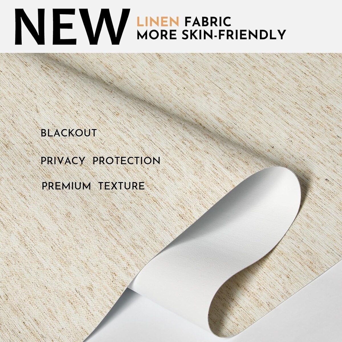 ?Linen Fabrics?Made from high-quality linen fabric, our blackout shades are designed to be soft and skin-friendly, providing full coverage to block out light in your home. Perfect for creating a cozy and peaceful atmosphere in any room. The fabric is precisely cut with a laser without any rough edges. Linen fabric is predominantly made from natural linen fibers, which are completely natural and odor-free, providing you a more comfortable and enjoyable environment.