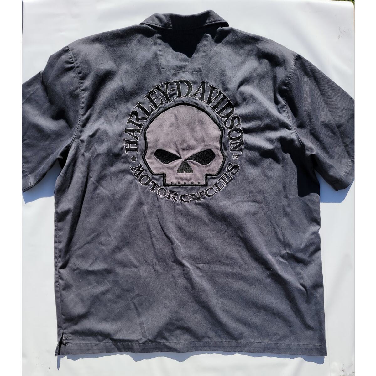 Harley Davidson Men’s Size XL Gray Willie G. Skull S/S Button Up Shirt