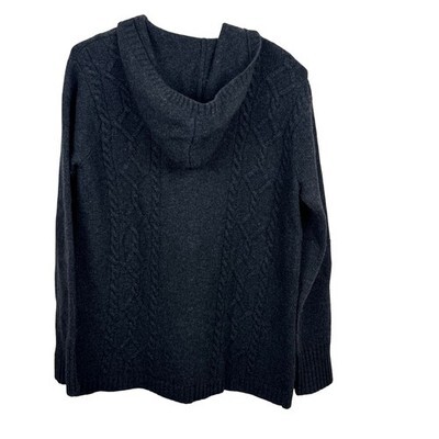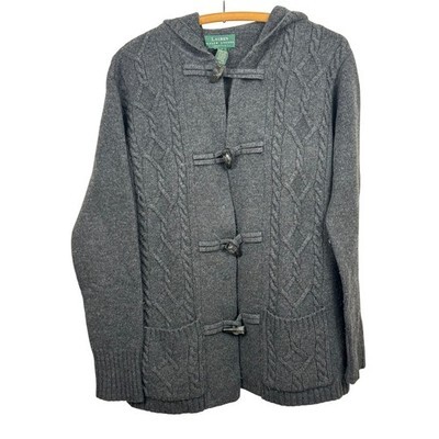 Lauren Ralph Lauren Petite Cable Knit Toggle Hooded Cardigan Sweater Gray P/S