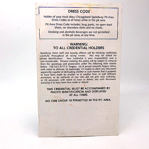 2004 NASCAR Busch & Nextel Cup Series PIT PASS Ticket Stub Chicagoland Speedway