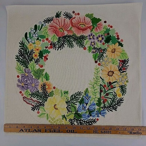 Handpainted Needlepoint Canvas Rainbow Designs XMAS Wreath Floral Berry HP 18 Ct