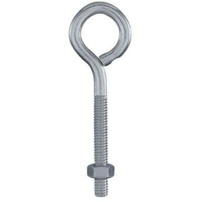 Product description: National Hardware's 3/8" x 5" Eye Bolt, with hex nut, is designed to firmly attach a securing eye to a structure for rope or cable ties. Manufactured from steel wire for durability. Standard machine screw threads allows for easily installation in a wide variety of applications. For interior and exterior applications where hanging is desired. Coated with WeatherGuard Protection to withstand harsh weather conditions and prevent corrosion. National Hardware's Lifespan Limited Lifetime Warranty