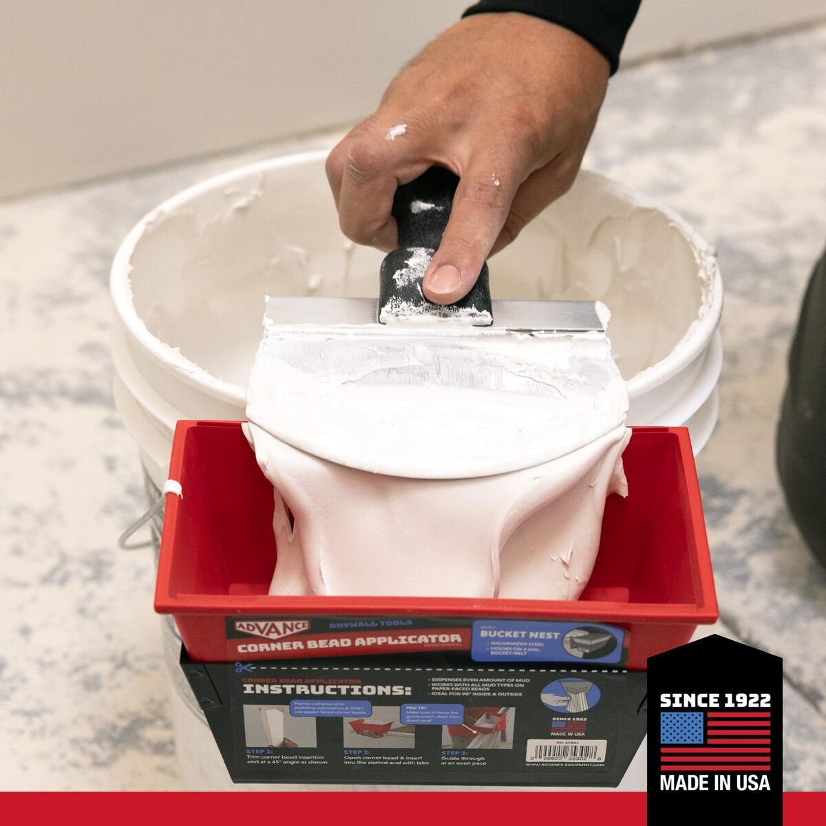 Product description: The Drywall Pail Scoop (Model 38406) by Advance Equipment features a curved stainless steel blade that allows for clean, efficient removal of drywall mud, mortar, grout, and stucco from pails. The ergonomically designed scoop ensures maximum material retrieval, making it an essential tool for drywallers and contractors working with messy materials. Built with durable construction, it?s designed for long-lasting use in tough jobsite conditions.