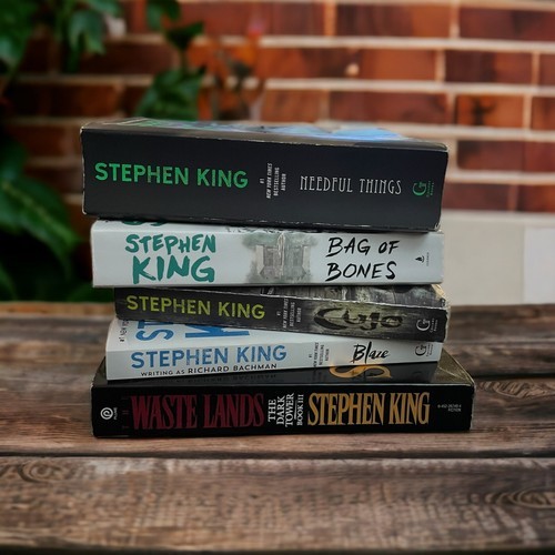 Experience the chilling horror of Stephen King's novels with this lot of five paperback books. Included in this set are Cujo, Blaze, Waste Lands - The Dark Tower Book III, Needful Things, and Bag Of Bones. Perfect for young adults and adults alike, these books are sure to keep you on the edge of your seat. Whether you're a fan of modernism or horror, these novels are the perfect addition to your collection. Don't miss out on this opportunity to dive into the world of Stephen King and get lost in his captivating narratives.