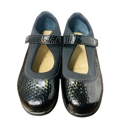 This Drew Rose Womens Mary Jane Adjustable Strap Shoe is a perfect choice for those who are looking for comfort and style. The shoe is made of black patent leather with a classic animal print pattern. It has a round toe shape and a low wedge heel style which makes it perfect for walking and everyday wear.