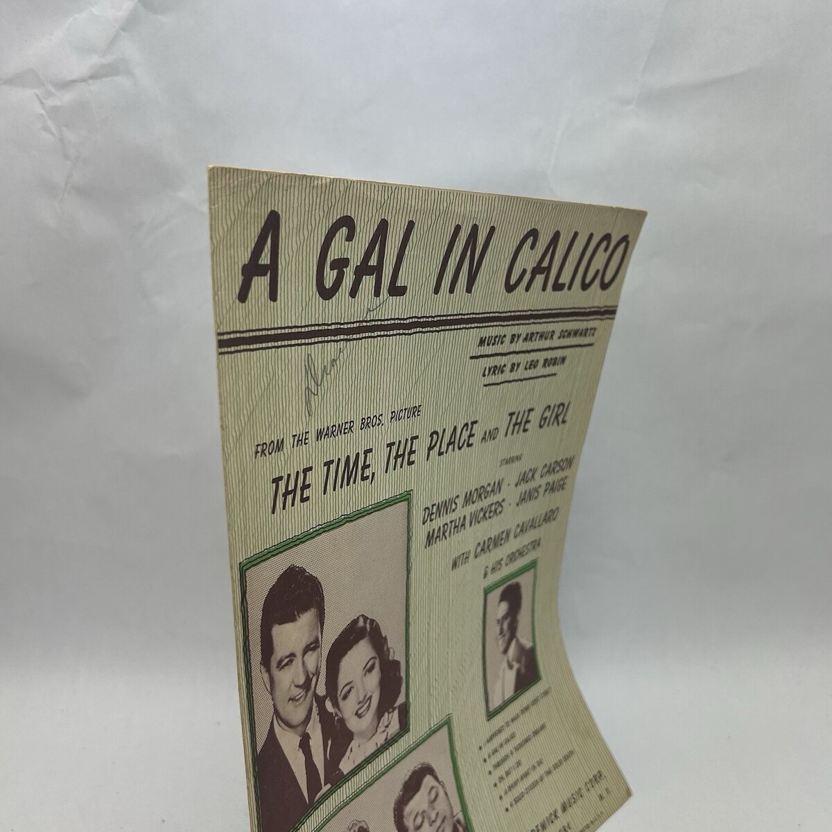 Sheet music with word for "A Gal In Calico" by Arthur Schwartz and Leo Robin. From the Warner Bros. Picture "The Time, The Place and The Girl"
