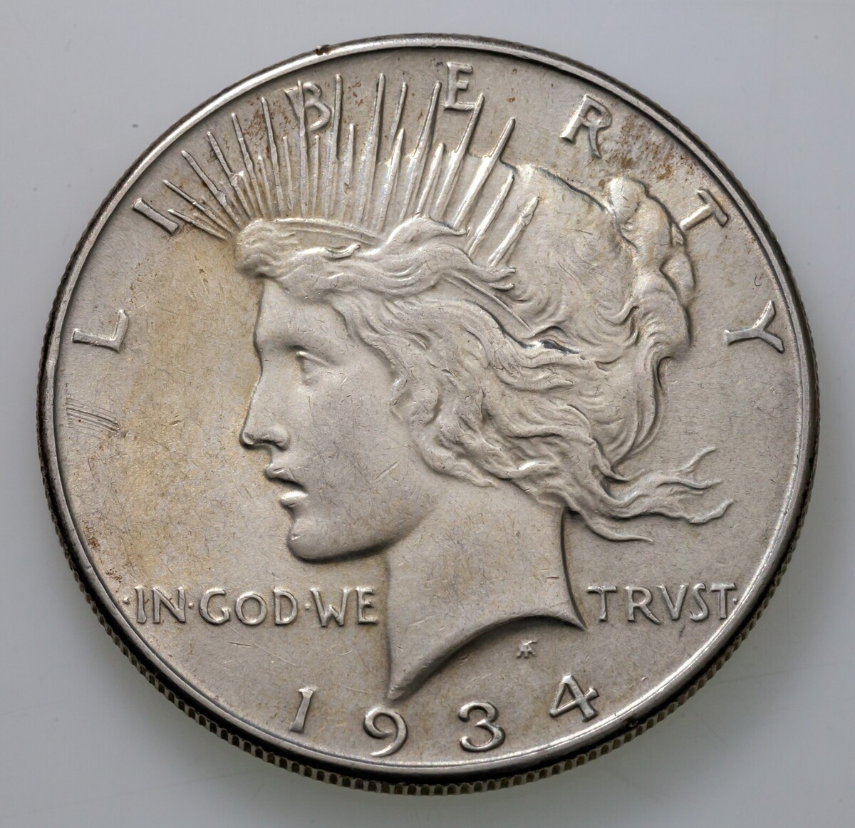 1934 $1 Silver Peace Dollar in AU Condition, and similar items
