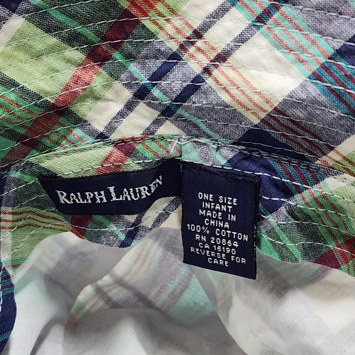 Ralph Lauren Plaid Bucket Hat Infant One Size 100% Cotton Infant Baby 6-9-12-18