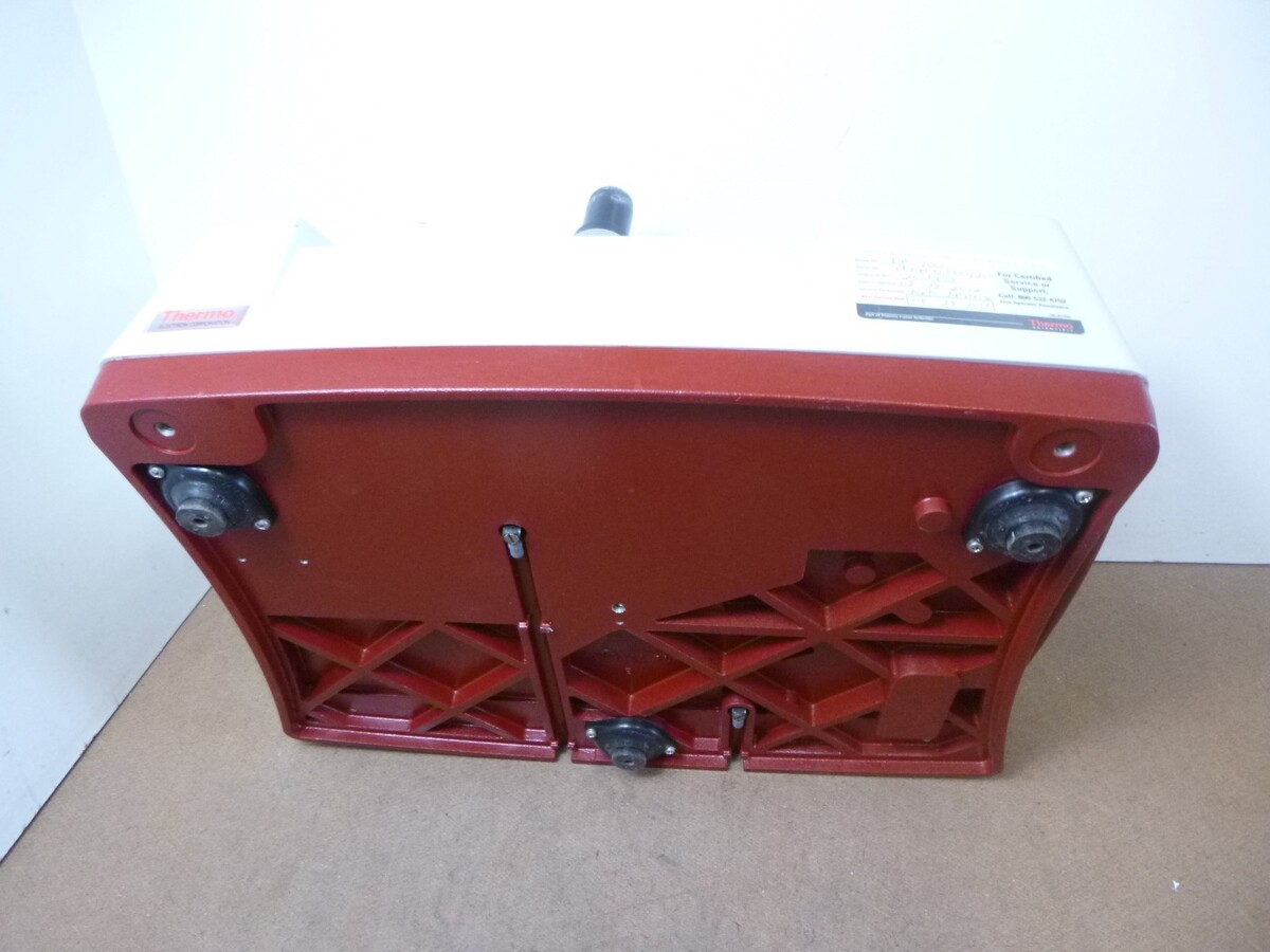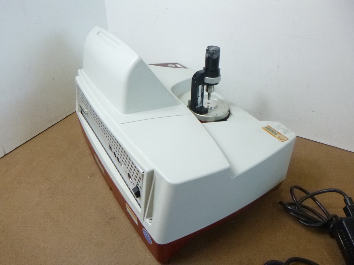 This spectrometer came from a community college and has an ID sticker on the top as well as some residue and scratches where another sticker was removed. Otherwise, it is in good condition. It powers on and responds to commands on the touch screen. The component that comes with this has part number 0039550 and 007810 on it. When I did an internet search for "Thermo 0039550" the only part that came up was something called a Micrometric Pressure Device. I don't know if that is what this component is, but you will get the component shown in the pictures. The metal cap fell off and was damaged by a forklift, but it is just dented and scraped up but it still works fine to protect the threads and the connector on top. This spectrometer comes with the component and power adapter shown in the pictures.