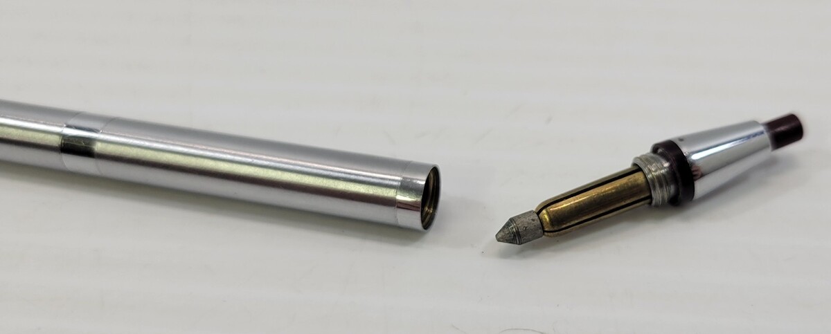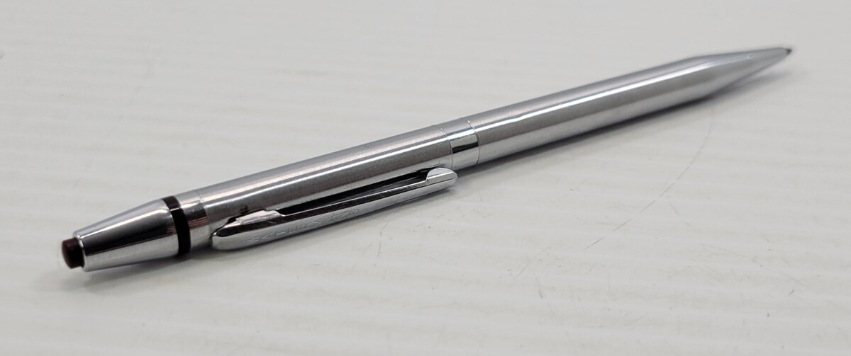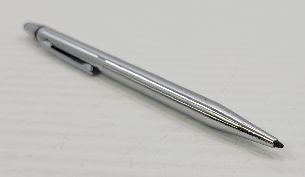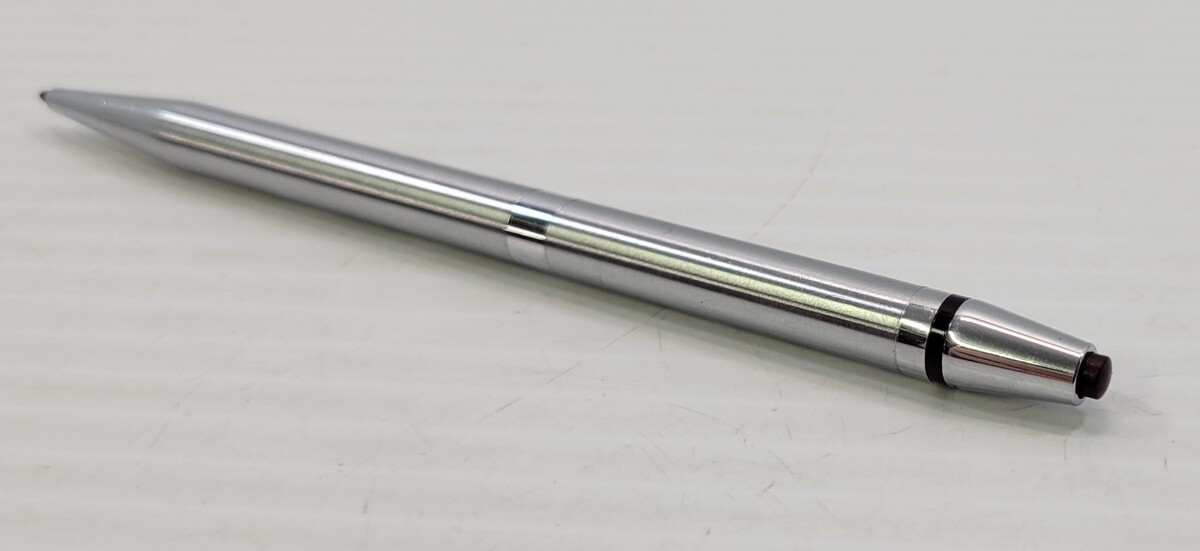 Pen will need to be serviced. The point does not stay clicked in the writing position. Nothing appears broken and may need a simple service. Pen has been in storage for some time, therefore ink may be dry and need replacement. Overall good vintage used physical condition.