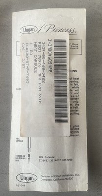 The NOS Ungar Princess Petite Heat Capsule Element #6910 is a 10W heating element for handles 6902 6903, designed for soldering and welding.