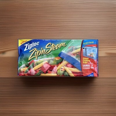 New sealed package of large ziploc zip?n steam bags.