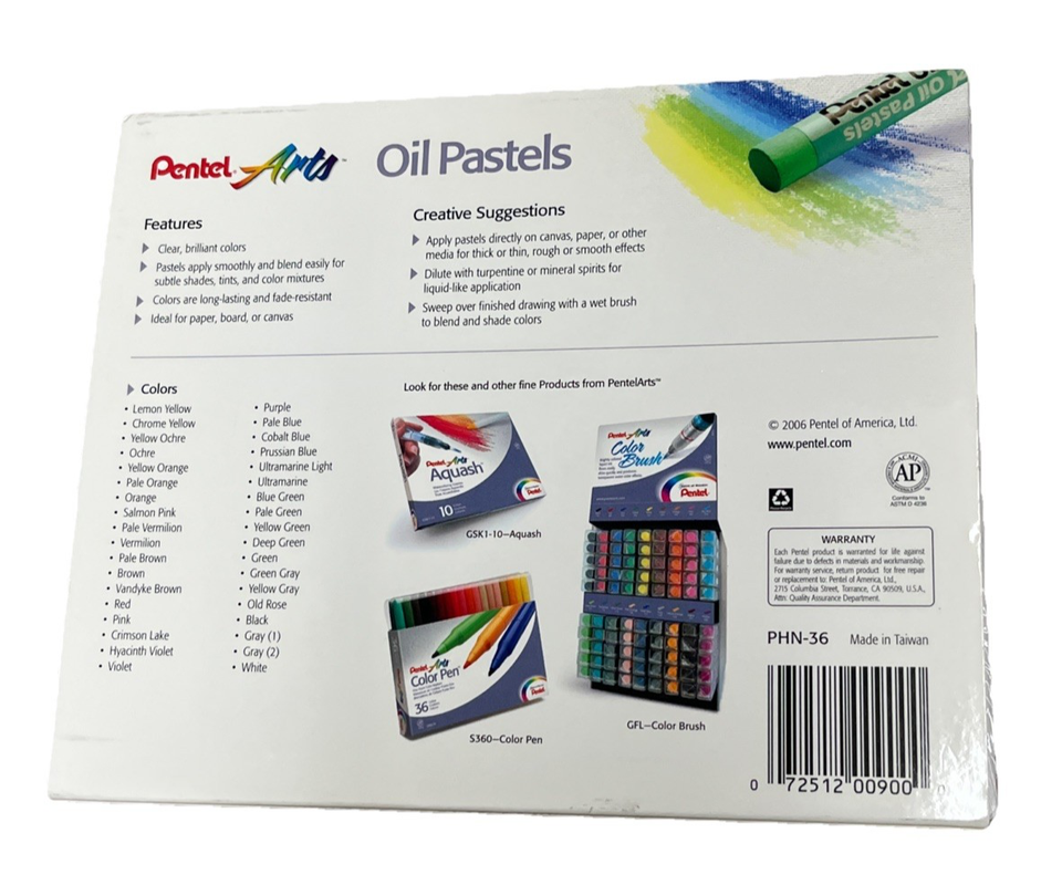 Pentel Oil Pastel 36 Color Set PHN36 For Paper Board Canvas Fade Resistant New?. Condition is New. Shipped with USPS Ground Advantage.