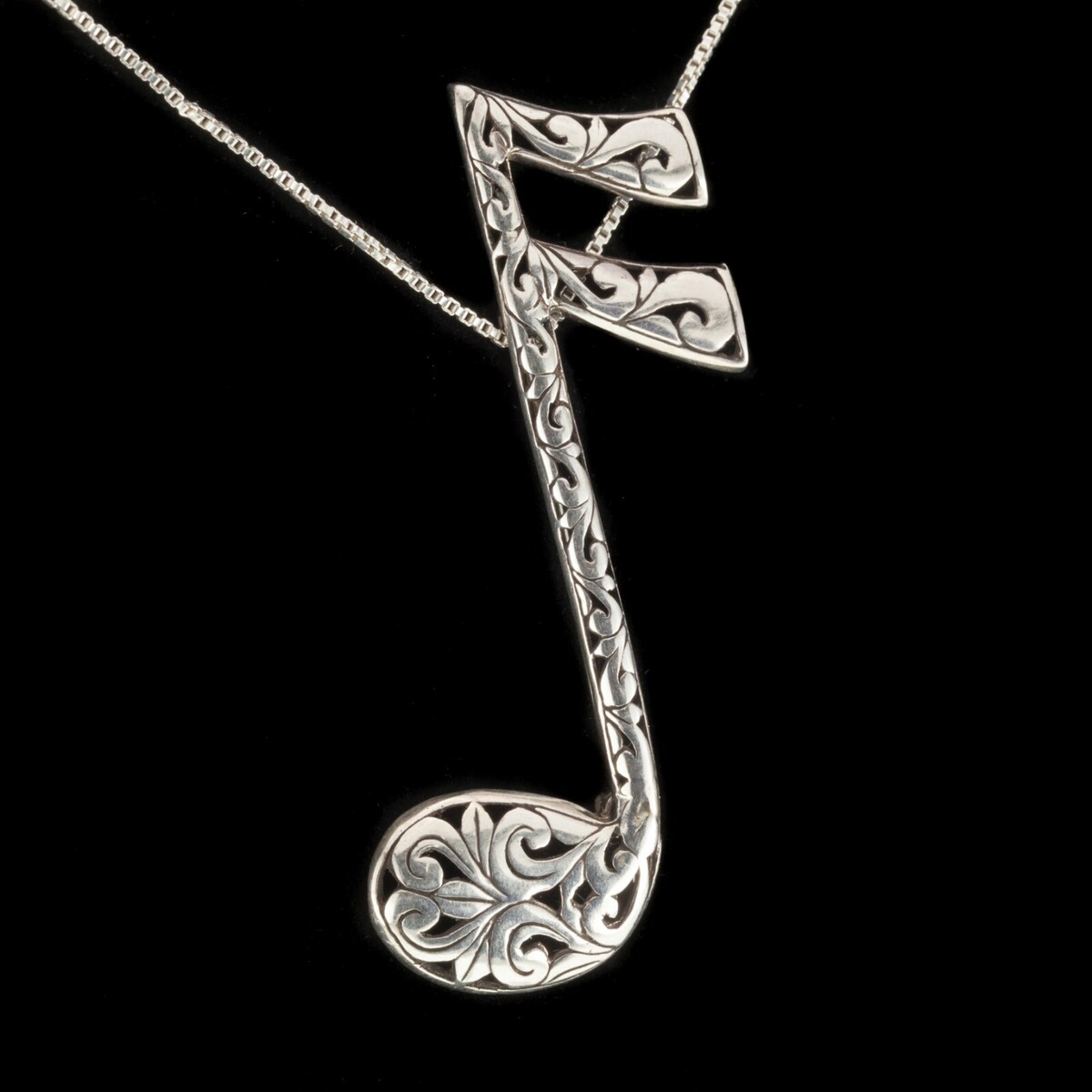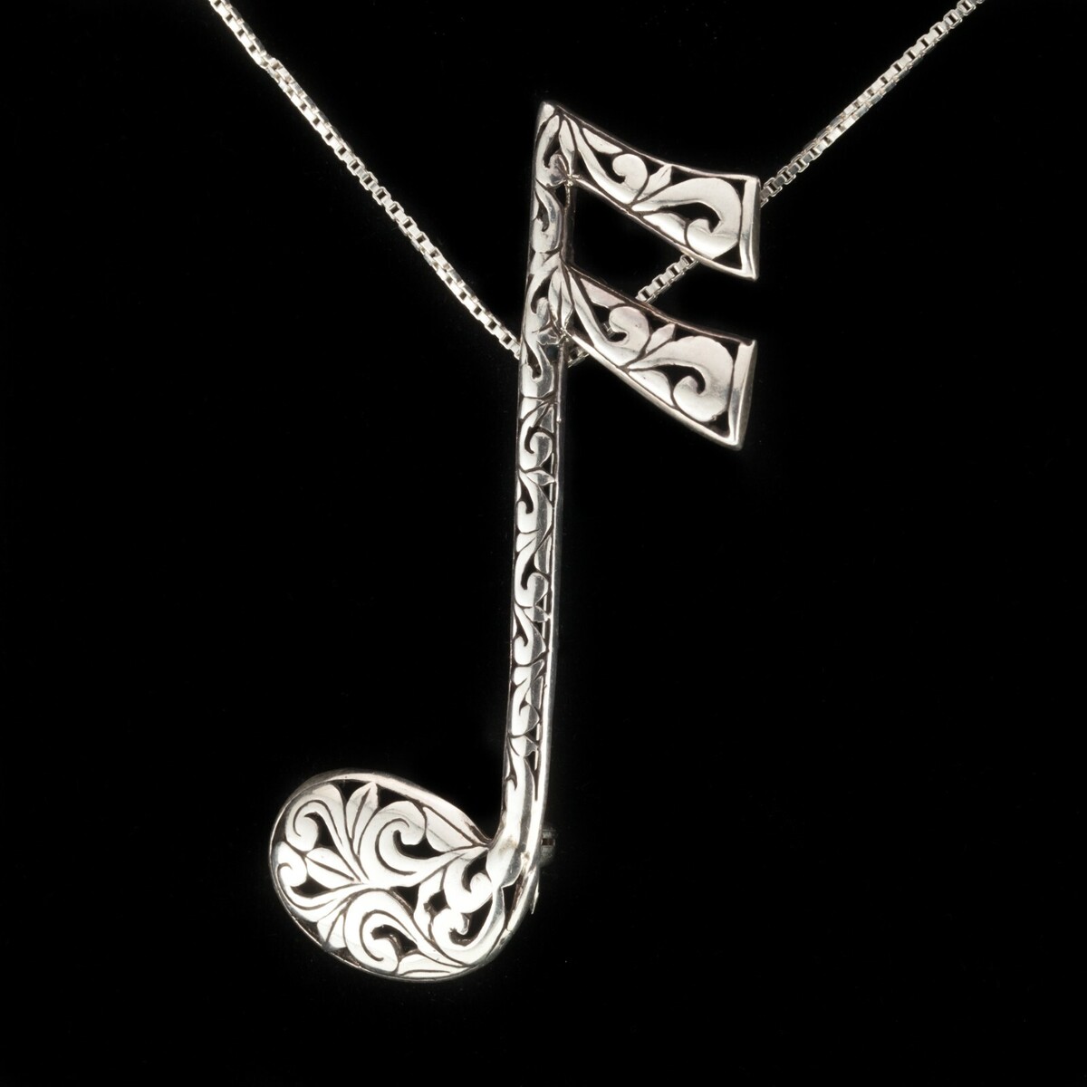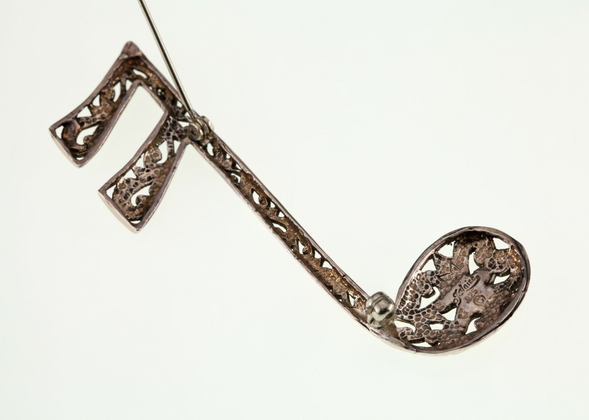 Vintage Jezlaine Music Clef Note Brooch in Sterling Silver 6.5gr