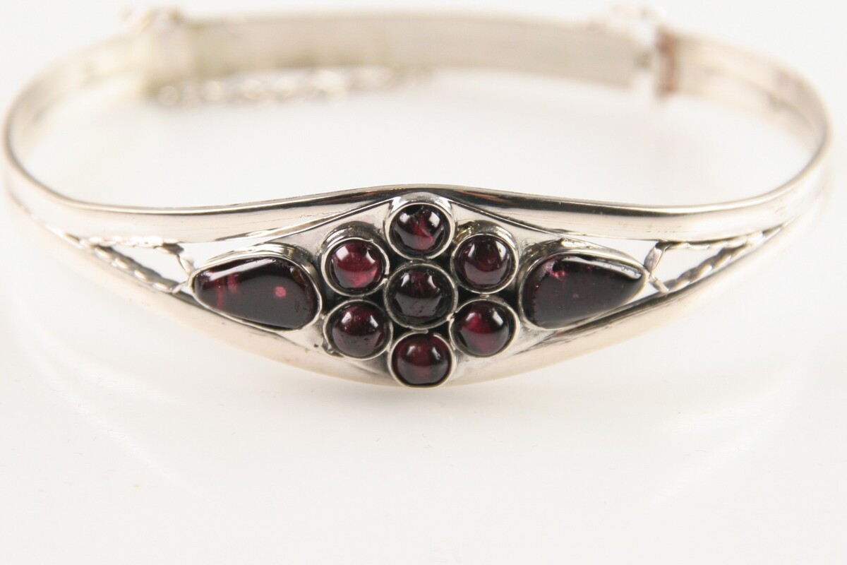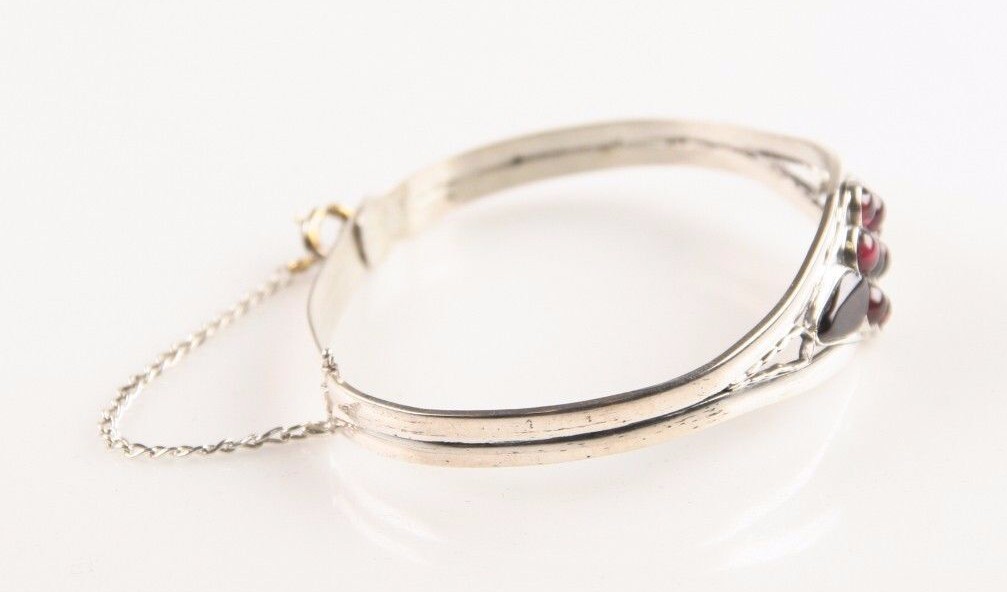 Bracelet decorated with 7 round and 2 teardrop cabochon amethyst stones