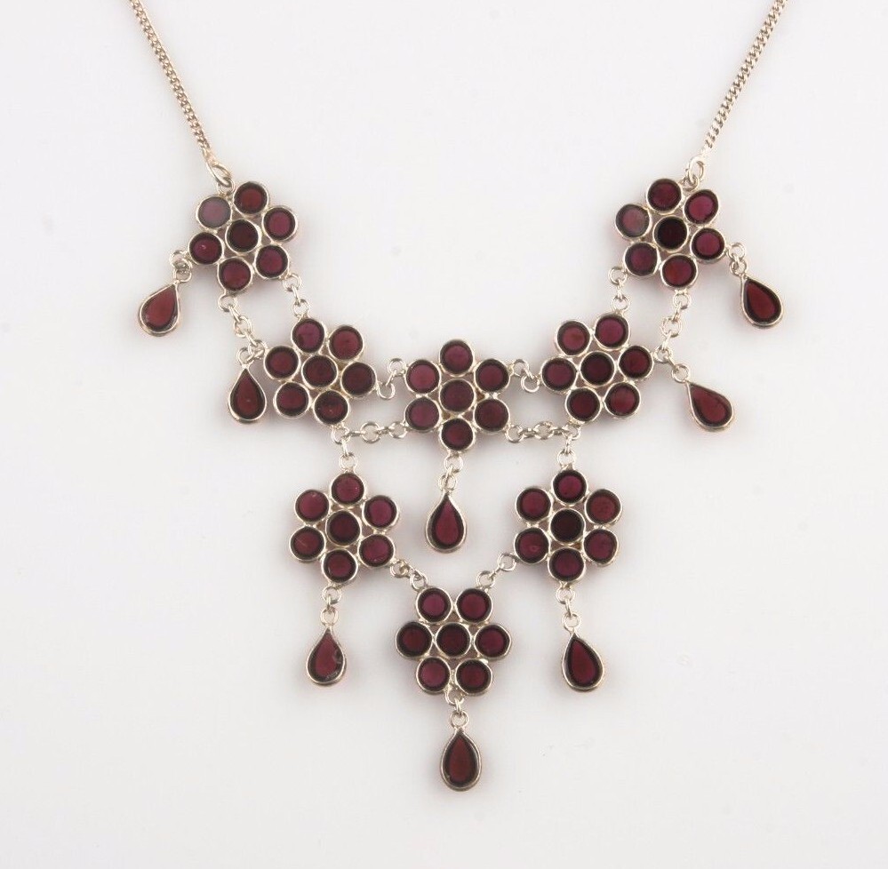 Vintage Silver Amethyst Cabochon "Flower Teardrop" Necklace and Bracelet Set