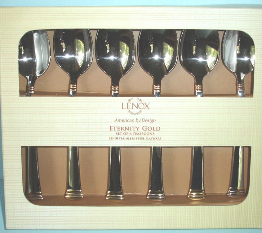 Lenox Eternity Gold Teaspoons 6 Piece Set 18/10 Stainless Flatware New in Box
