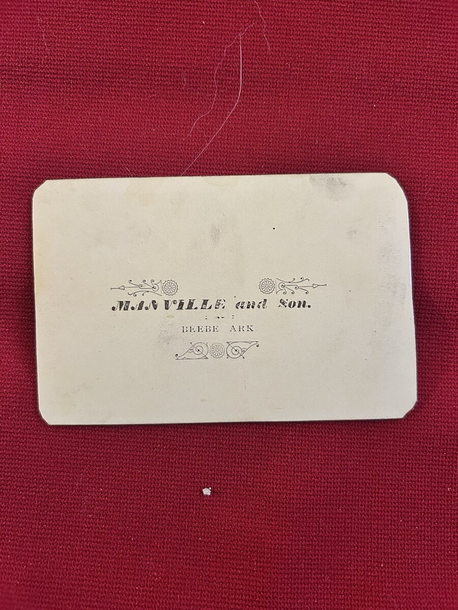 The product is an antique cabinet card featuring a beautiful young lady with a bun, measuring 2.5" x 3.75" and in sepia color. This original photograph from the late 19th century, captured by Manville Son, showcases a woman in a portrait orientation, making it a unique addition to any collection of Americana or historical photographs. The unframed cardboard and paper material add to its authenticity and charm, reflecting the nostalgic theme and style of the time period.