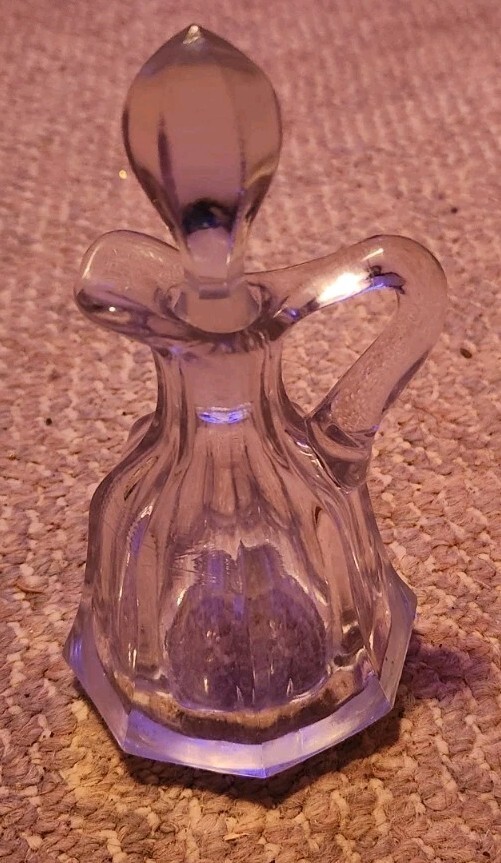 Good used condition. Maker is unknown. Has a few light nicks on the stopper. Measures 6 inches tall.