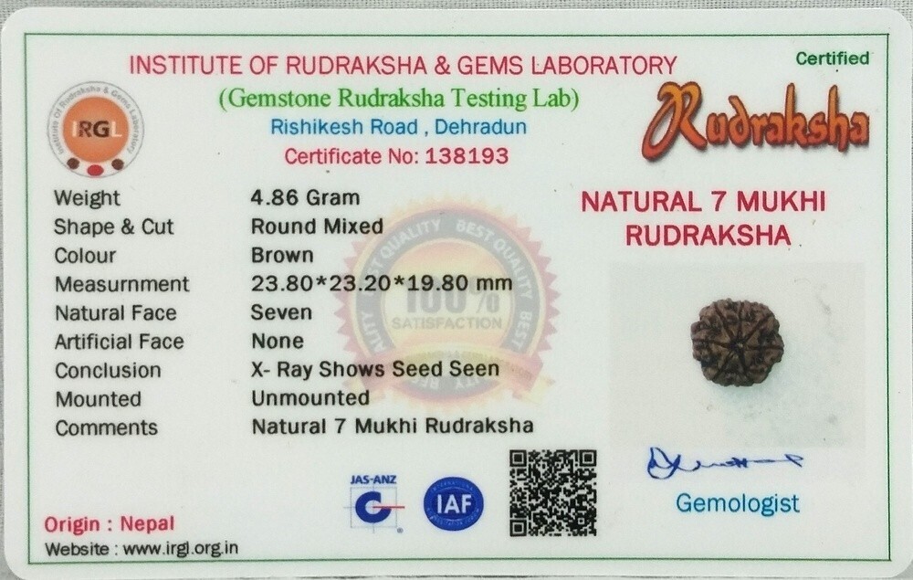 Dimension of Neplai 7 mukhi rudraksha : 23.80 mm * 23.20 mm * 19.80 mm